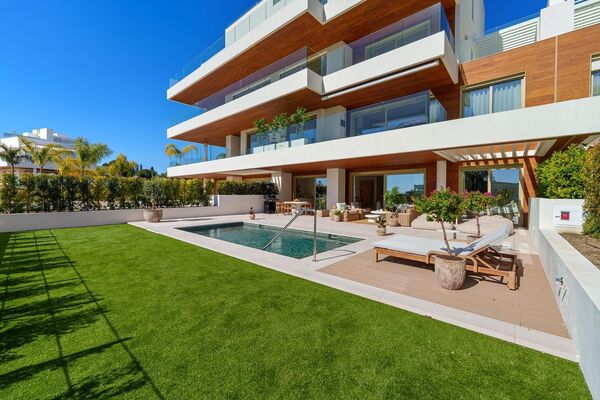 In the best building of the most exclusive district of Marbella center, this spectacular last floor front-line! This unic property with its 390m2 in total consists of two apartments together, 3 big bedrooms and 3 bathrooms with the possibility to keep them together or having an independent part; big and spacious fully equipped kitchen with dining table, a shining and bright living room giving to the terrace in the south part. Facing orientation of the property is the best: SOUTH and WEST, to enjoy the sun all day long and having an incredible views of the sunset on its terrace. The terrace is something unic with its 120m2, it makes corner and it goes all around the apartment, giving the possibility to the kitchen and any bedroom to have direct access to it. It is not necessary to describe the views as the fact of staying on the terrace enjoying a coffee or a drink, it feels every time just like an authentic privilege. 2 big parking spaces are included in the underfloor garage of the building. The complex has an absolutely well maintained community garden and a luxury acclimatized swimming pool facing the best part of the famous Promenade of Marbella. This magic property it is not a dream, is real and it is located in the most absolute luxury beach front complex between Marbella center and the famous GoldenMile close to all amenities.