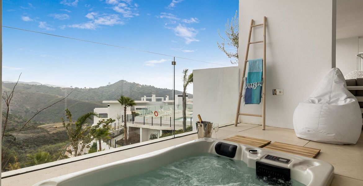 Discover an immaculate 3-bedroom apartment in "La Perla de Palo Alto," featuring generous indoor and outdoor living spaces with incredible finishes by renowned interior designers Gunni & Trentino, and panoramic views of the Andalusian hills and the Mediterranean Sea.