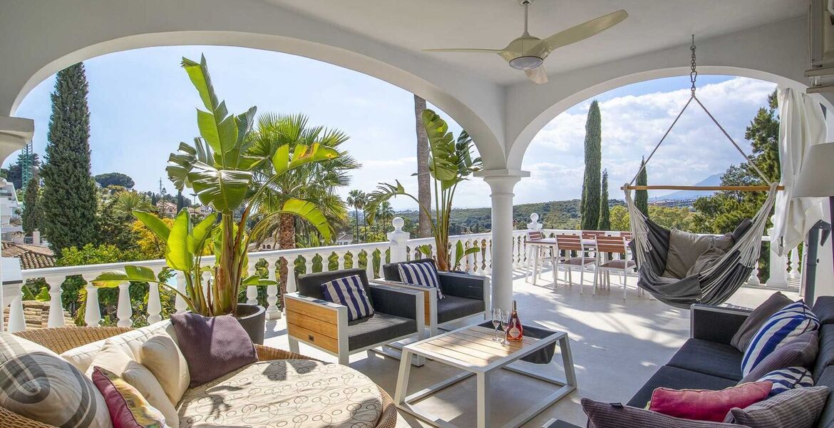 Situated on Paraíso Hill, overlooking the golf course and just a short drive from Marbella and Puerto Banús, this villa enjoys phenomenal sea, golf, and mountain views. Prepare to be captivated by the vistas stretching from the Mediterranean Sea to Gibraltar and Africa from the multiple terraces.