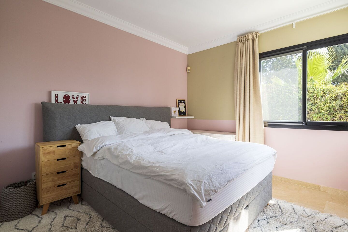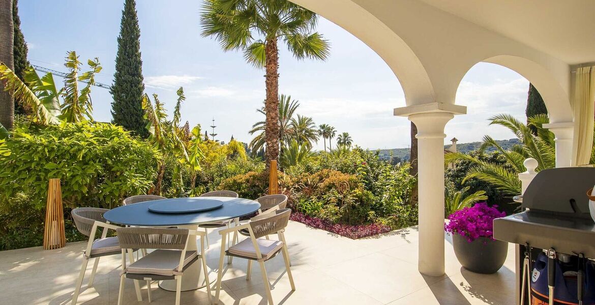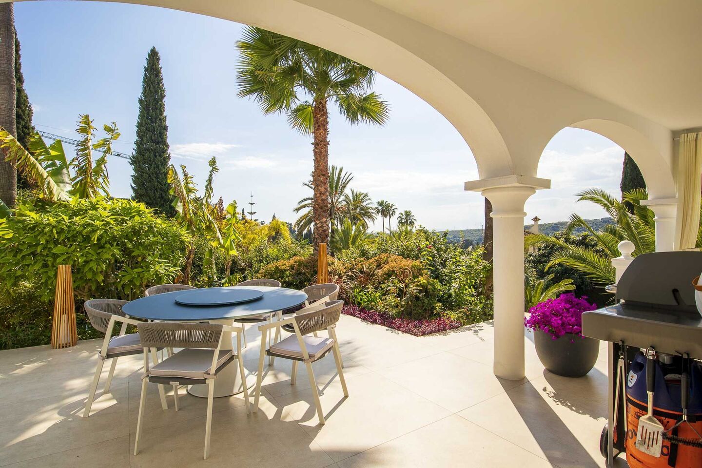 The villa enjoys a prime location close to amenities yet offering peace and quiet. It is a short drive from some of the best beaches on the Costa del Sol, with San Pedro just five minutes away and Puerto Banús ten minutes away. A golf course is within a few hundred meters, and all essential amenities like supermarkets and restaurants are just over a kilometer away.