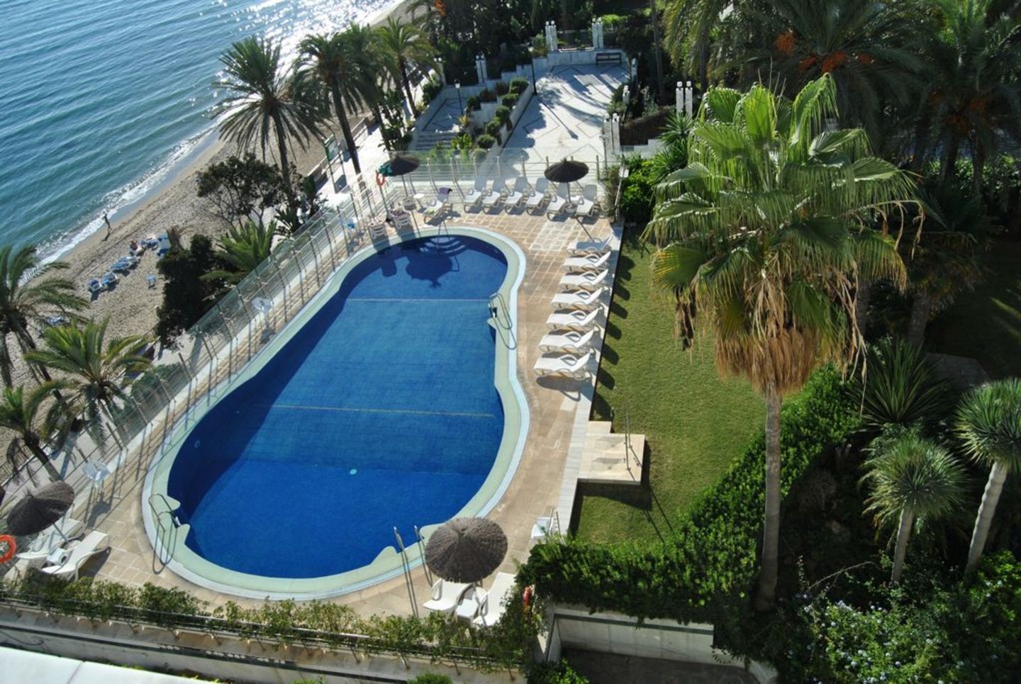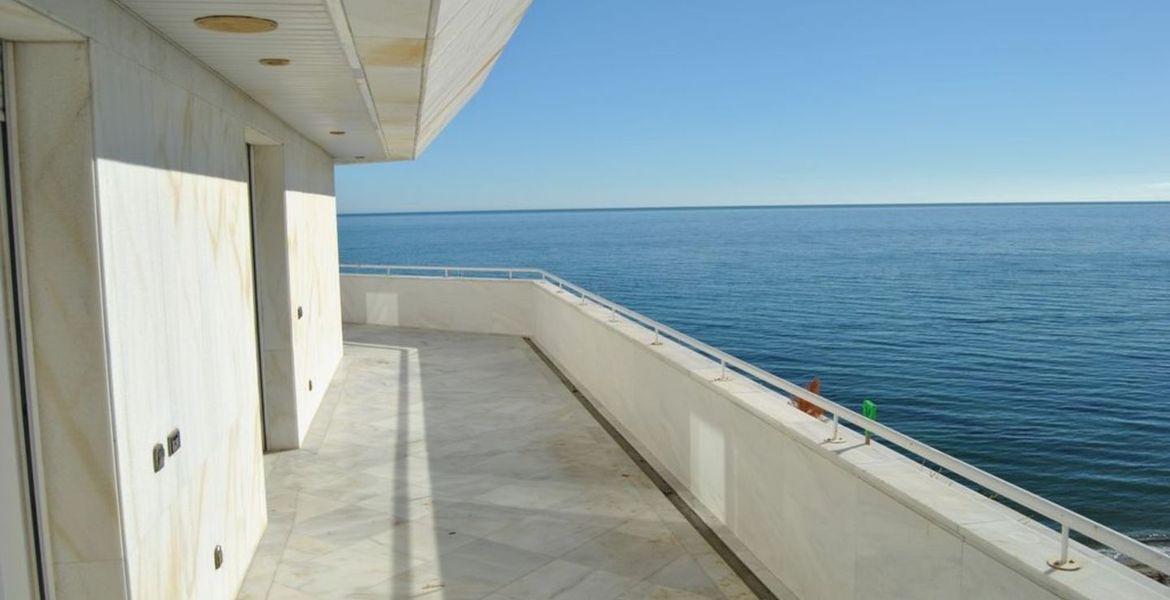 In the best building of the most exclusive district of Marbella center, this spectacular last floor front-line! This unic property with its 390m2 in total consists of two apartments together, 3 big bedrooms and 3 bathrooms with the possibility to keep them together or having an independent part; big and spacious fully equipped kitchen with dining table, a shining and bright living room giving to the terrace in the south part. Facing orientation of the property is the best: SOUTH and WEST, to enjoy the sun all day long and having an incredible views of the sunset on its terrace. The terrace is something unic with its 120m2, it makes corner and it goes all around the apartment, giving the possibility to the kitchen and any bedroom to have direct access to it. It is not necessary to describe the views as the fact of staying on the terrace enjoying a coffee or a drink, it feels every time just like an authentic privilege. 2 big parking spaces are included in the underfloor garage of the building. The complex has an absolutely well maintained community garden and a luxury acclimatized swimming pool facing the best part of the famous Promenade of Marbella. This magic property it is not a dream, is real and it is located in the most absolute luxury beach front complex between Marbella center and the famous GoldenMile close to all amenities.