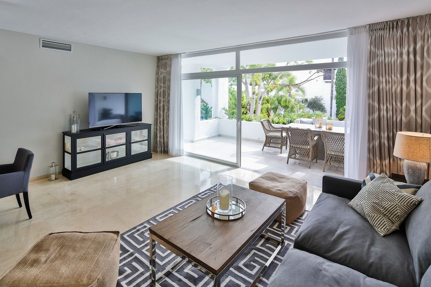 Fabulous Beach Front apartment situated in the Marbella promenade at the border of Marbella centre and the Golden Mile, walking distance to all type of facilities and amenities, it offers spectacular views overlooking the flamboyant gardens of this prestigious urbanisation. This property offers a total of 3 bedrooms, 2 bathrooms and 1 guest toilet. and can accommodate a total of 6 persons at any one time.
