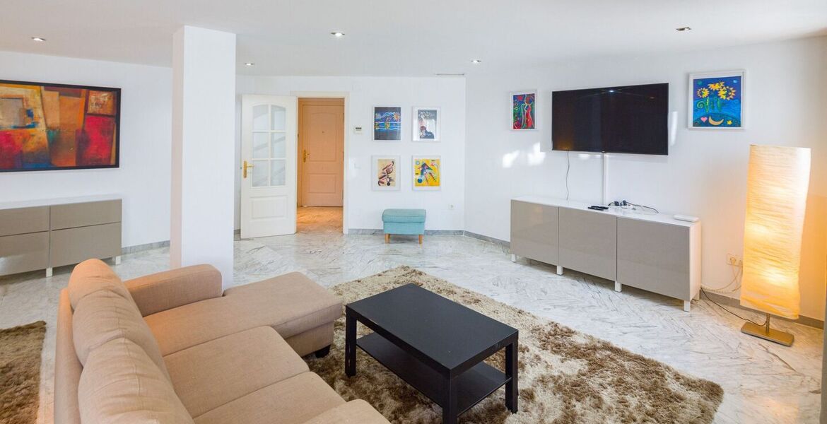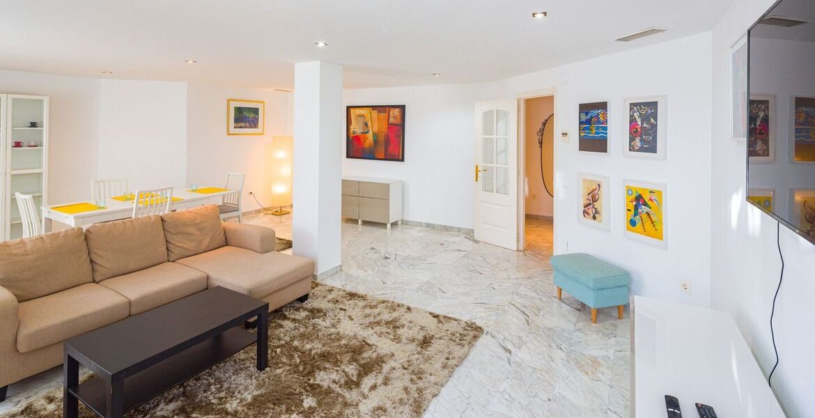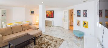 Lovely apartment south faced located on the eastern part of Puerto Banus, within walking distance to the beach. Situated in a secured gated community, offers security 24 hours, beautiful landscaped gardens , various swimming pools and direct access to the beach. The property offers spacious living-dining area , 2 bedrooms, 2 bathrooms, 1 ensuite,fully fitted kitchen and laundry room . Tiled completely in marble, the apartment is fitted with air conditioning . Furthermore it is provided with one parking space.