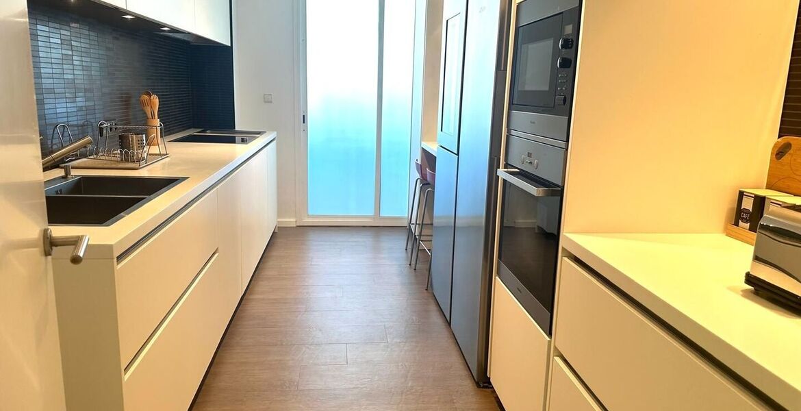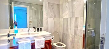 The apartment has 4 large bedrooms, 4 bathrooms, a large living-dining room with access to the large
