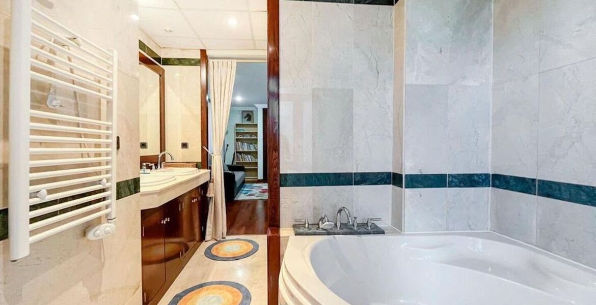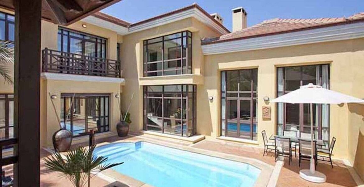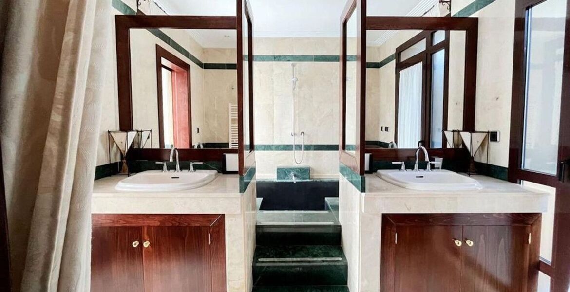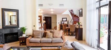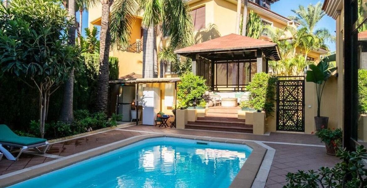 Bungalow for rent in the exclusive development Bahia de Banus one of the most outstanding luxury complexes in Marbella beach side in Puerto Banus, intimate, with a distinctive Asian influence in both its architecture and exotic gardens, fantastic location next to famous Mistral Beach, just 2 mins walk. This property has a built of 340m2, an utility area of 294m2, 3 bedrooms and 3 bathrooms, living room with fire place, fully furnished kitchen with dinning area, private garden with glove, swimming pool and garage for two cars.