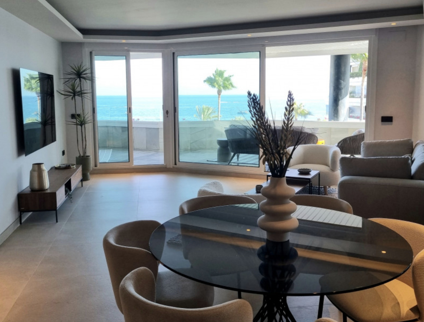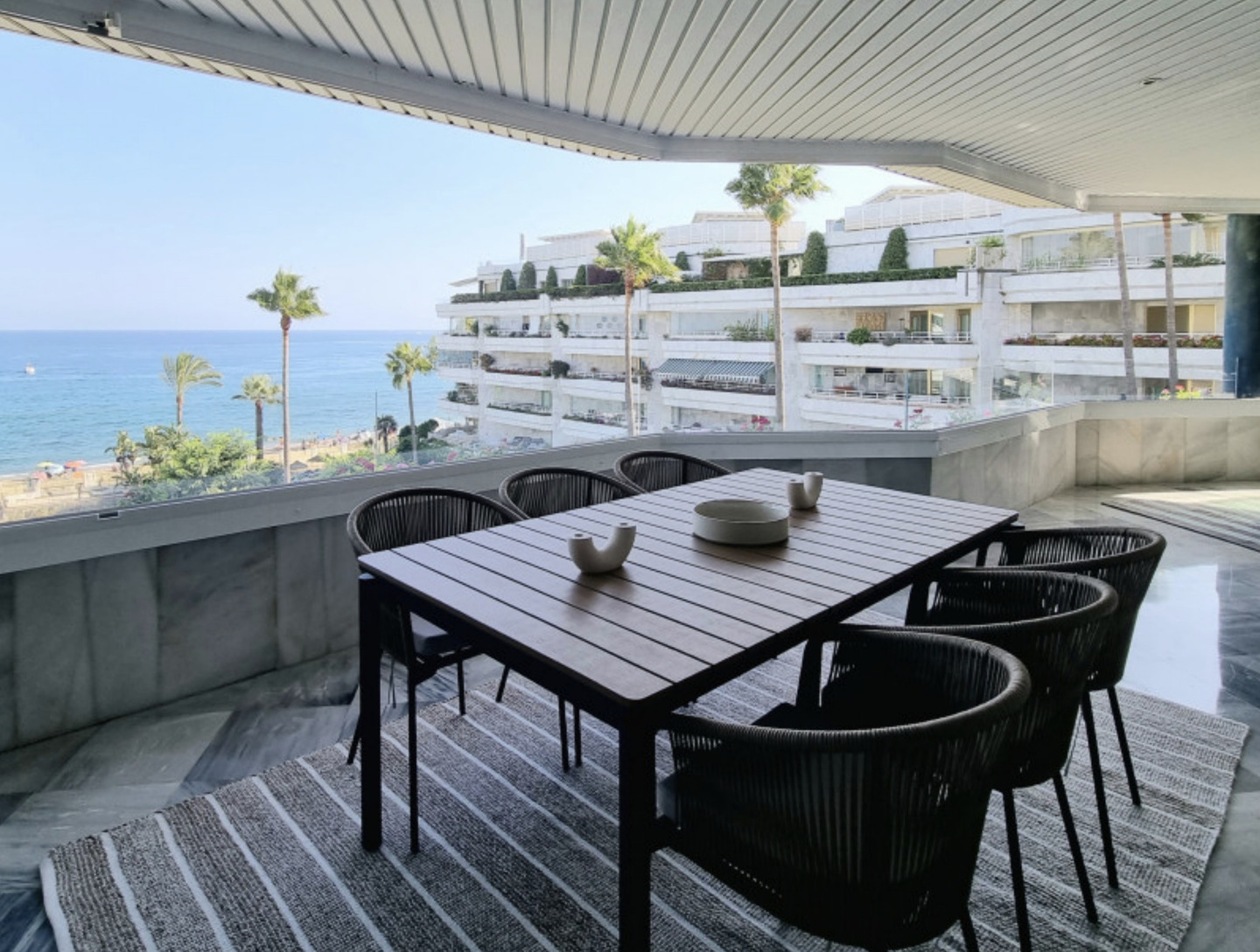 Experience the ultimate holiday in this stunning beachfront apartment located in the sought-after Playa Esmeralda complex. This is the prime location of the Golden Mile, perfectly nestled between Puerto Banus and Puente Romano.
