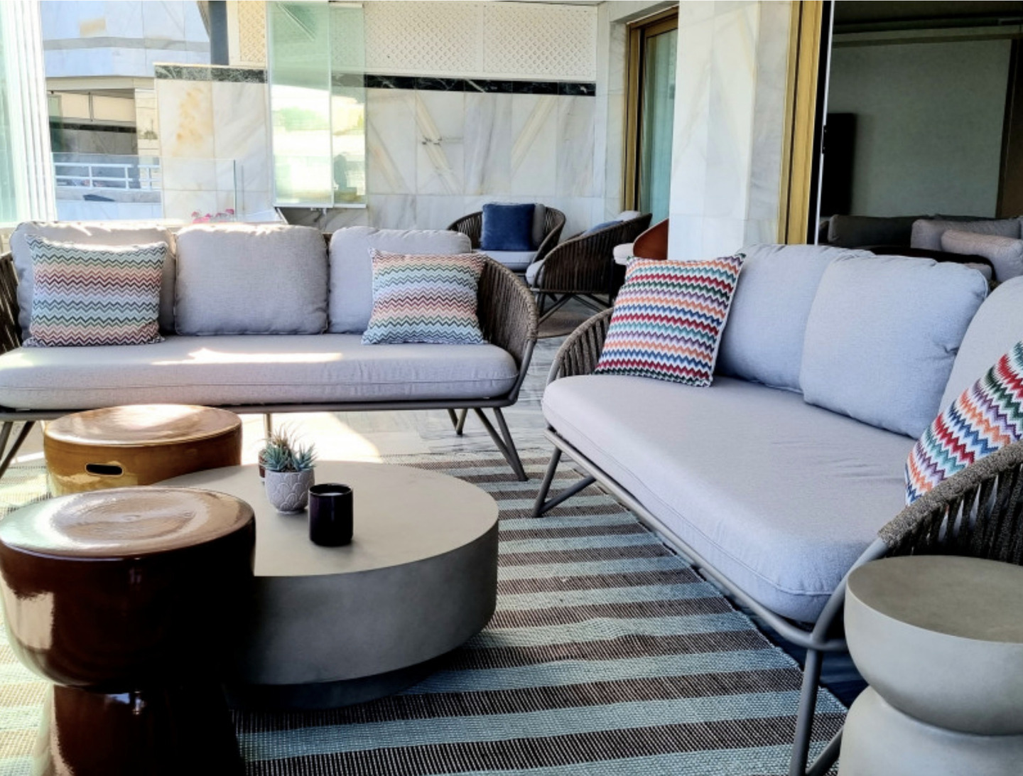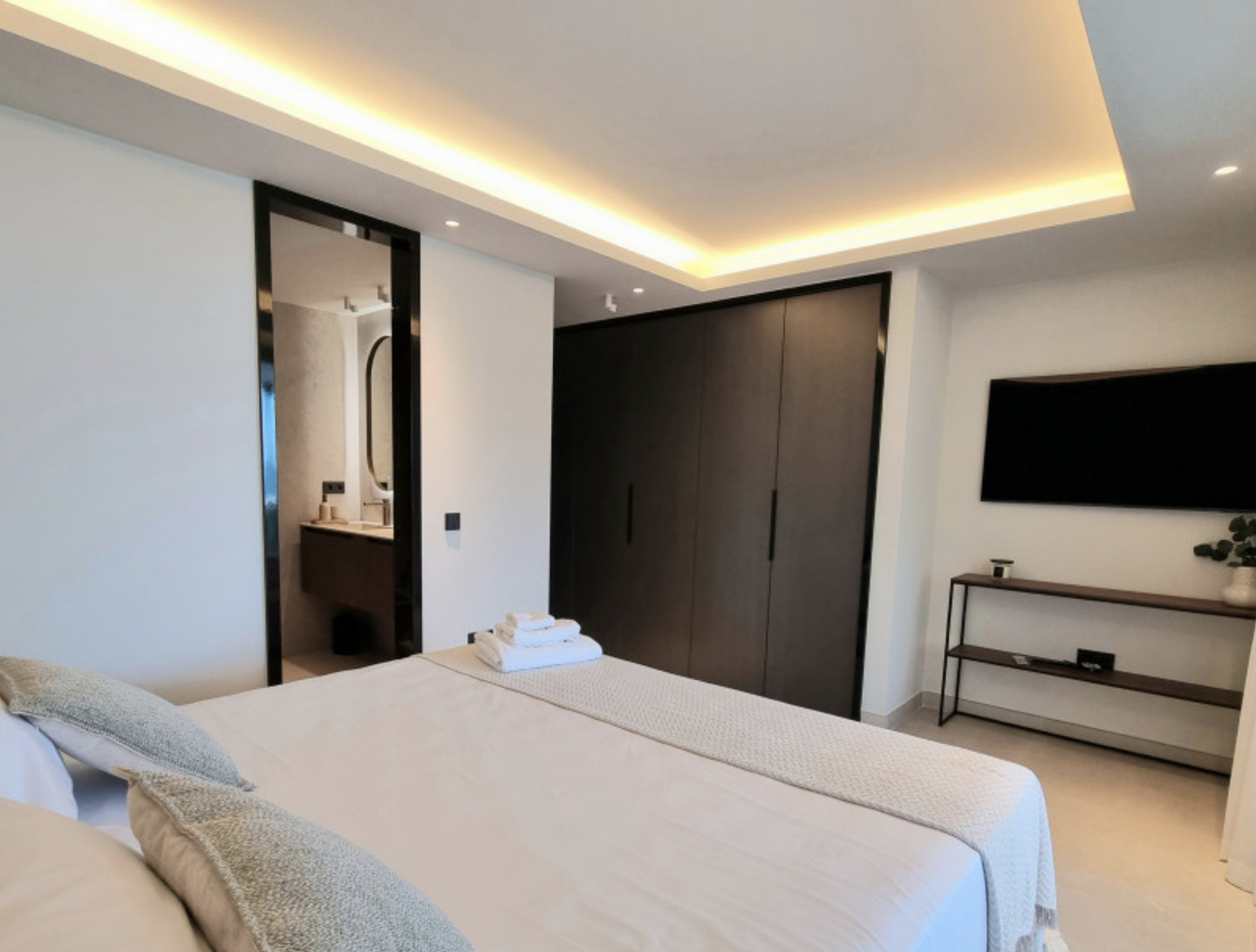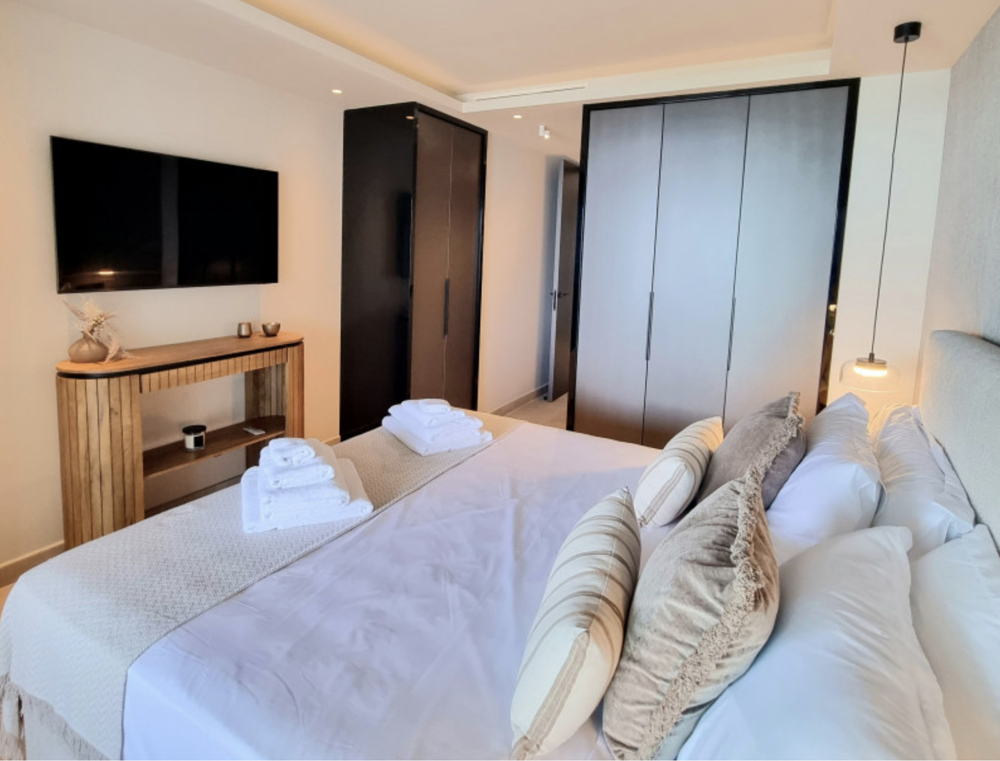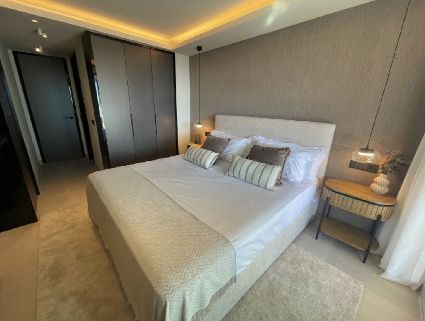 Space and Elegance With a total of 151 m², this property offers a generous layout including 3 bedrooms and 3 bathrooms. The 48 m² private terrace is the highlight, providing breathtaking views of the Mediterranean Sea, lush gardens, and the swimming pool.