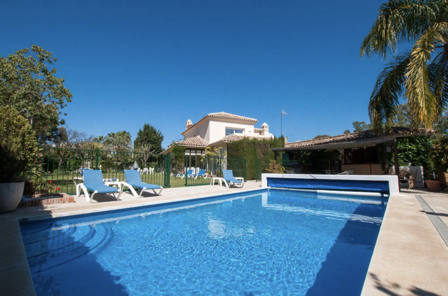 Disfrute de una estancia inolvidable en esta espectacular villa de 600 m² ubicada en una de las zonas más tranquilas y familiares de Estepona. Con una capacidad para 12 personas, esta propiedad destaca por su amplitud, privacidad y cercanía a la costa, situándose a tan solo 550 metros de la playa de arena.