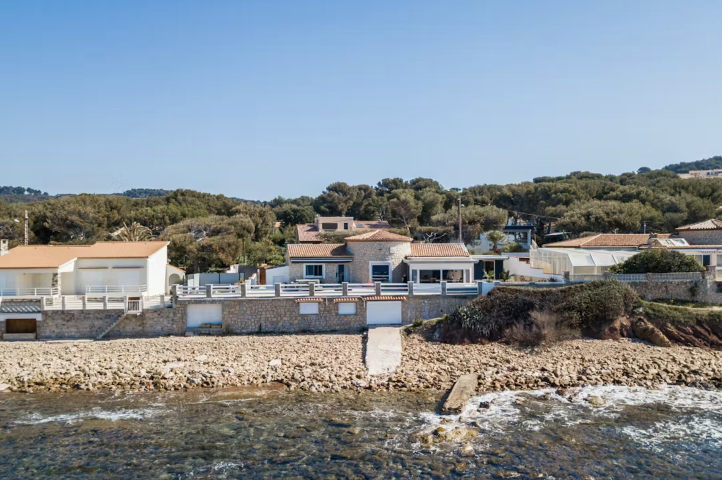 Disfrute de la esencia del Mediterráneo en esta exclusiva propiedad situada sobre una playa de guijarros en la codiciada zona de Var. Con vistas panorámicas que se extienden por la Bahía de Sablettes hasta Cap Sicié, esta villa es el refugio perfecto para quienes buscan desconexión y elegancia en la Costa Azul.