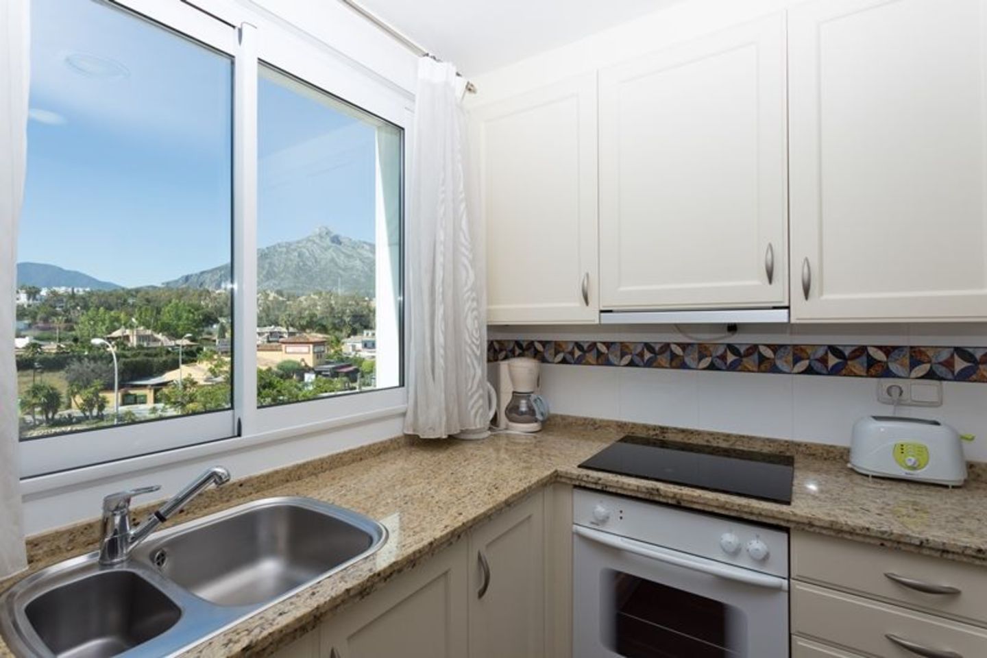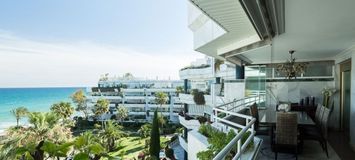 Cet appartement de 3 chambres pouvant accueillir jusqu'à 7 personnes comprend 3 salles de bains, une cuisine entièrement équipée et une terrasse de 50 m² offrant des vues sur la mer, la piscine et le jardin.