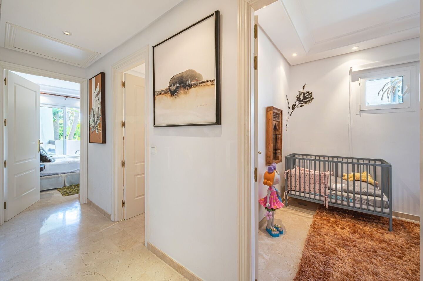 Bel appartement au rez-de-chaussée avec 4 chambres et 3 salles de bain, en front de mer, dans la prestigieuse urbanisation Ventura del Mar, un complexe privé avec des installations de luxe dans la zone de Puerto Banús, Marbella, avec un accès direct à la promenade et à la plage et à 5 minutes à pied du Port.