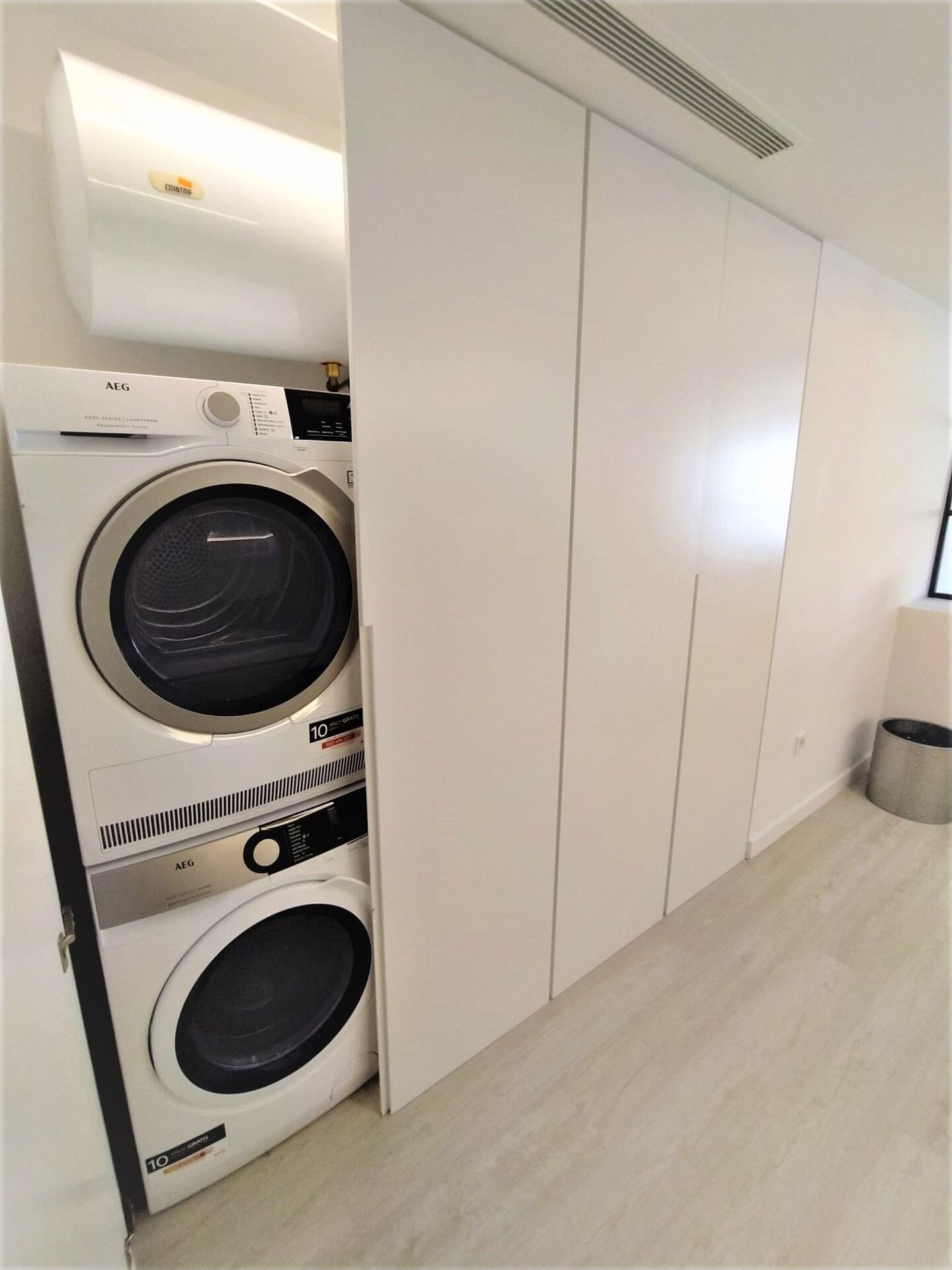 L'appartement comprend un salon/salle à manger spacieux et très ensoleillé avec accès à la terrasse, une cuisine entièrement équipée, deux très grandes chambres et une salle de bains complète.