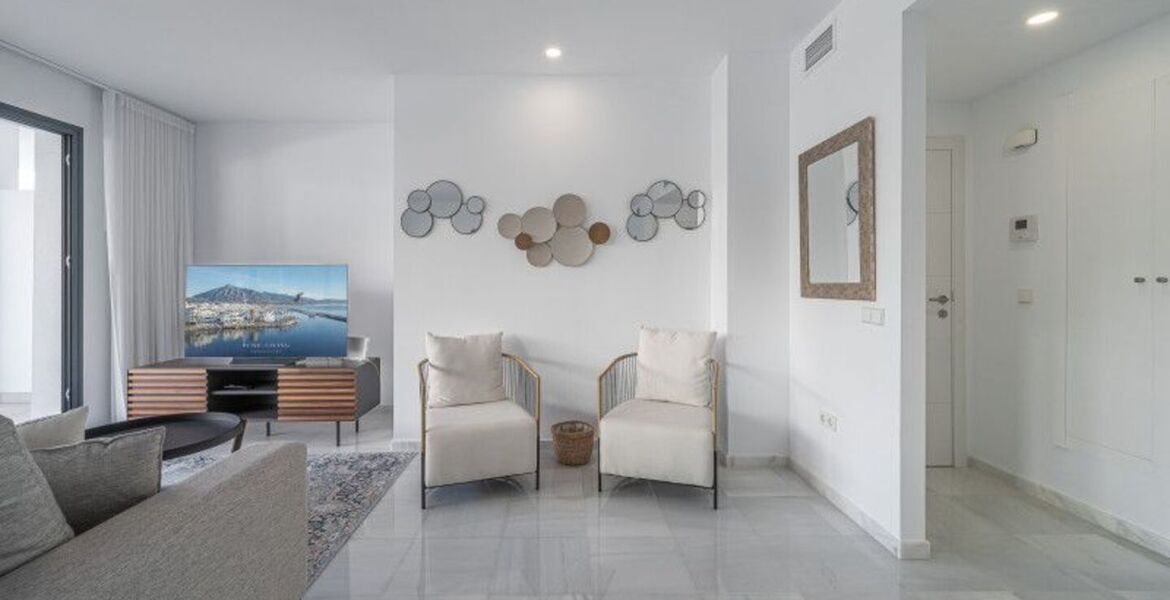 Cet appartement contemporain est situé sur le Golden Mile, avec une sécurité 24h/24 et à distance de marche du luxueux Puente Romano, du Marbella Club Hotel et de la plage.