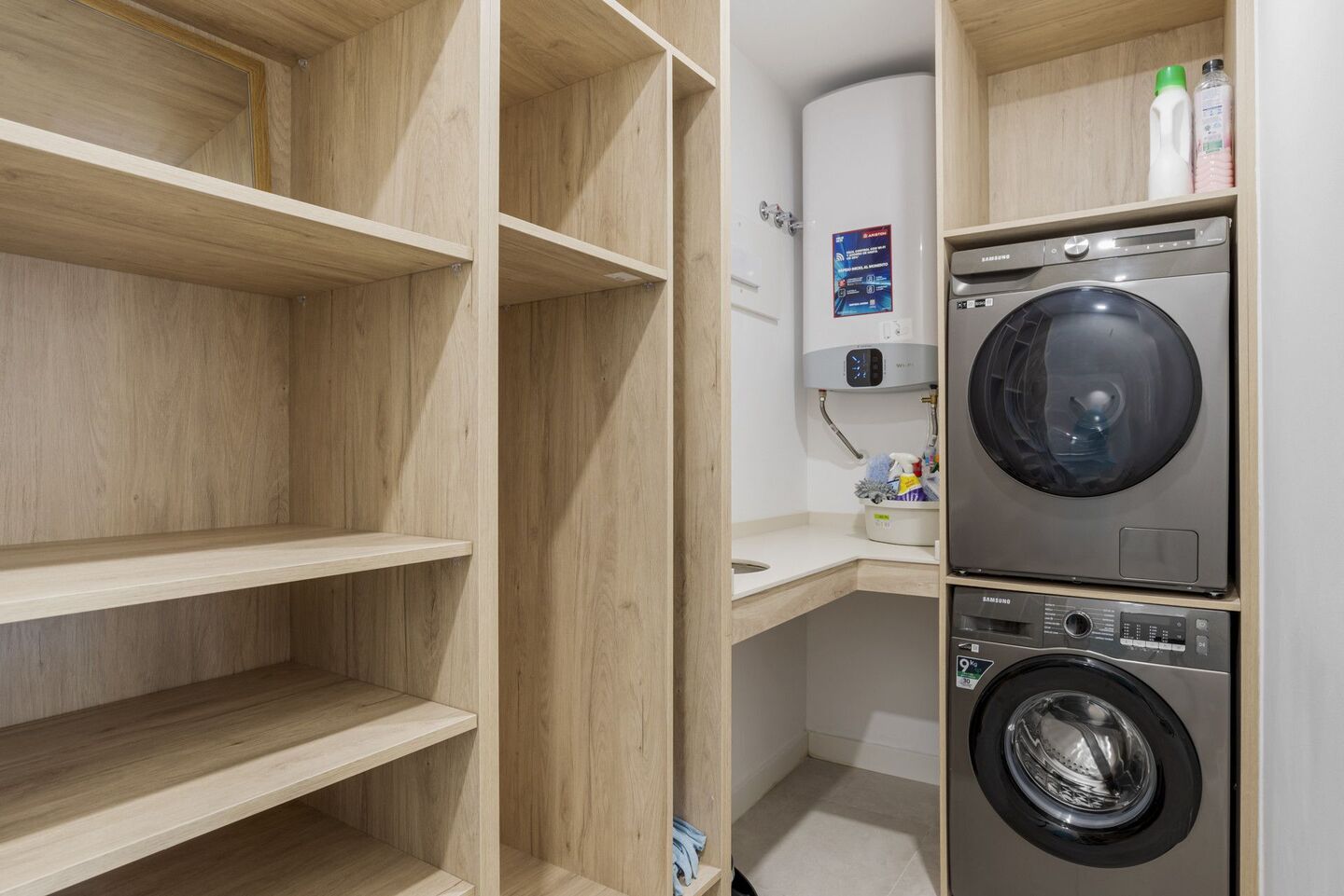 L'appartement comprend une chambre principale avec un lit king-size, une deuxième chambre avec des lits superposés, un espace de vie ouvert, une cuisine entièrement équipée, une connexion Wi-Fi haut débit et une climatisation.