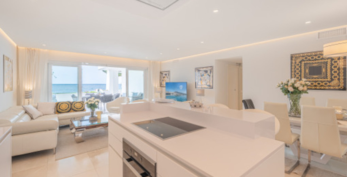 Cet appartement exceptionnel bénéficie d’un front de mer spectaculaire avec un très prudent au pied des TIC, qui mène directement à la plage et à Puente Romano est l’une des meilleures zones du jardin Golden Mile.