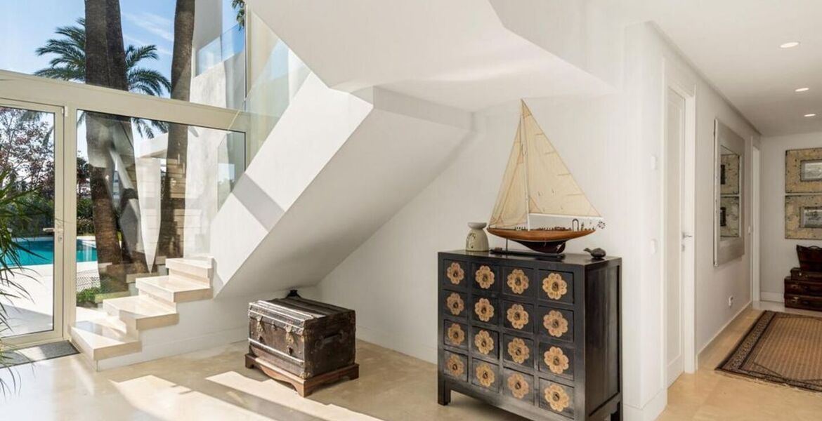 La villa isolée bénéficie d'une vue imprenable sur la mer depuis les espaces de vie et les terrasses ainsi que sur les environs verdoyants et la vallée formant le parc du palais de la famille royale saoudienne. Il s’agit sans aucun doute de l’un des endroits les plus recherchés et les plus recherchés de la municipalité de Marbella. Il est parfait pour ceux qui souhaitent passer des vacances tranquilles à Marbella ou pour ceux qui cherchent à profiter des restaurants, des bars, de la vie nocturne et des possibilités de shopping de Puerto Banus et de Marbella.