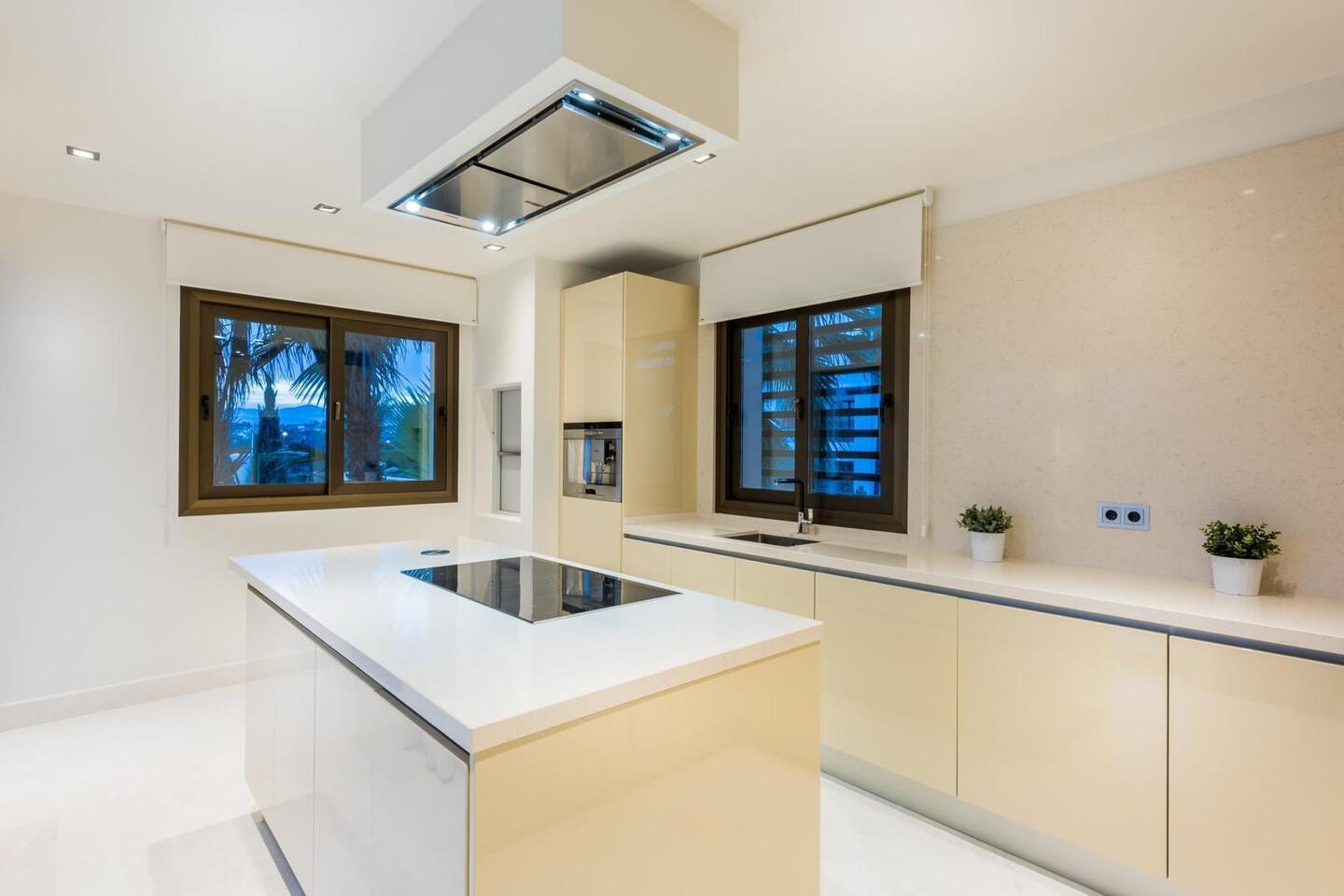 Espaces Sophistiqués et Confort Moderne La villa se distingue par son architecture contemporaine et son concept de vie intérieure-extérieure. Le vaste salon, baigné de lumière naturelle, s'intègre parfaitement aux terrasses et aux jardins privés. Elle dispose d'une cuisine de pointe entièrement équipée, idéale pour les amateurs de gastronomie.