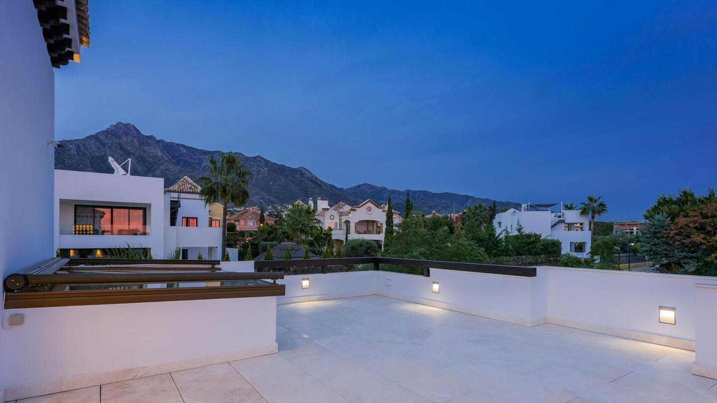 Chambres de Rêve et Vues Panoramiques La propriété propose de grandes suites conçues pour un repos total. La suite principale offre des vues spectaculaires sur la mer Méditerranée et la montagne de La Concha. De plus, le solarium sur le toit comprend une deuxième piscine et un espace de détente pour admirer les plus beaux couchers de soleil de Marbella.