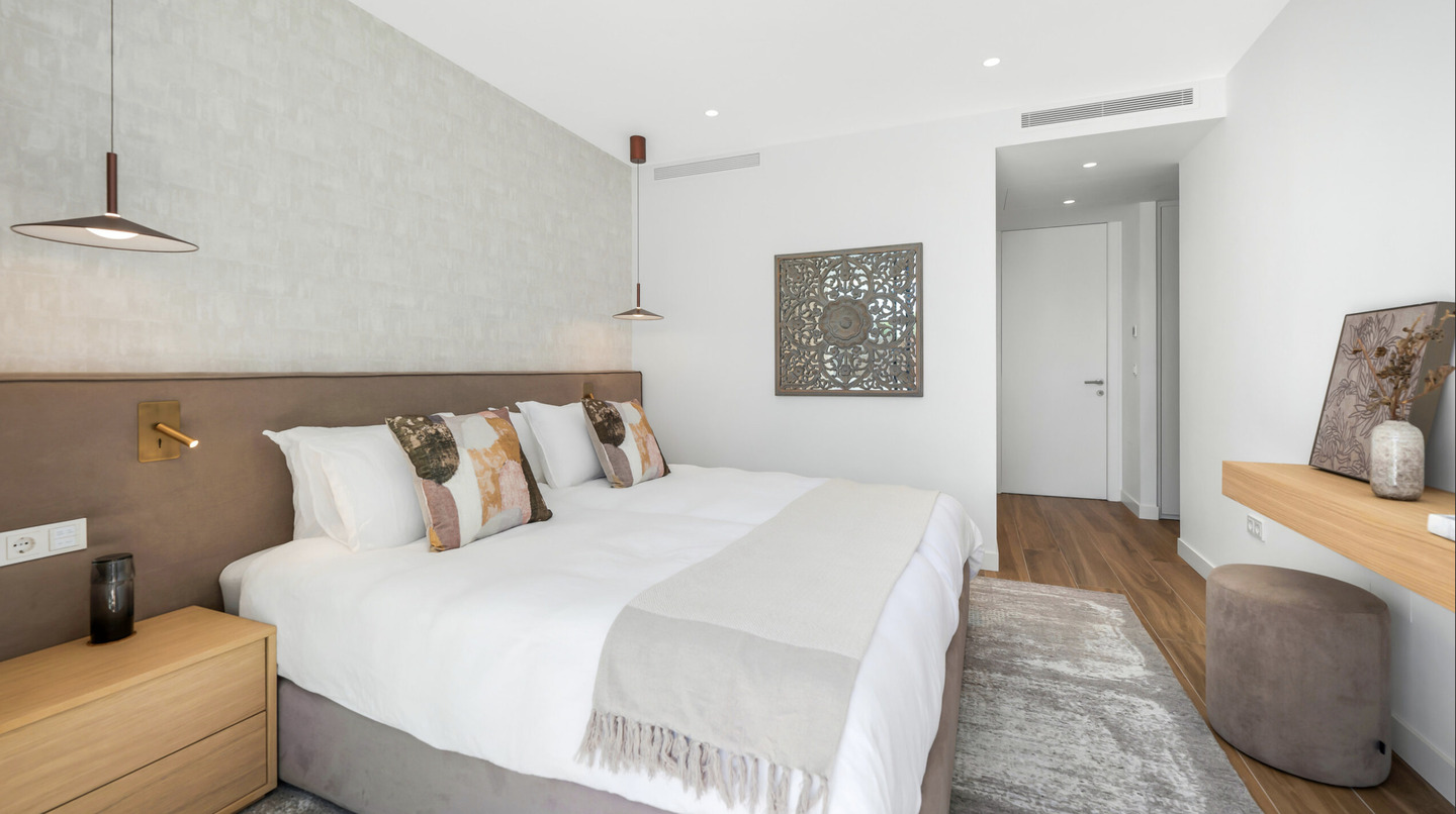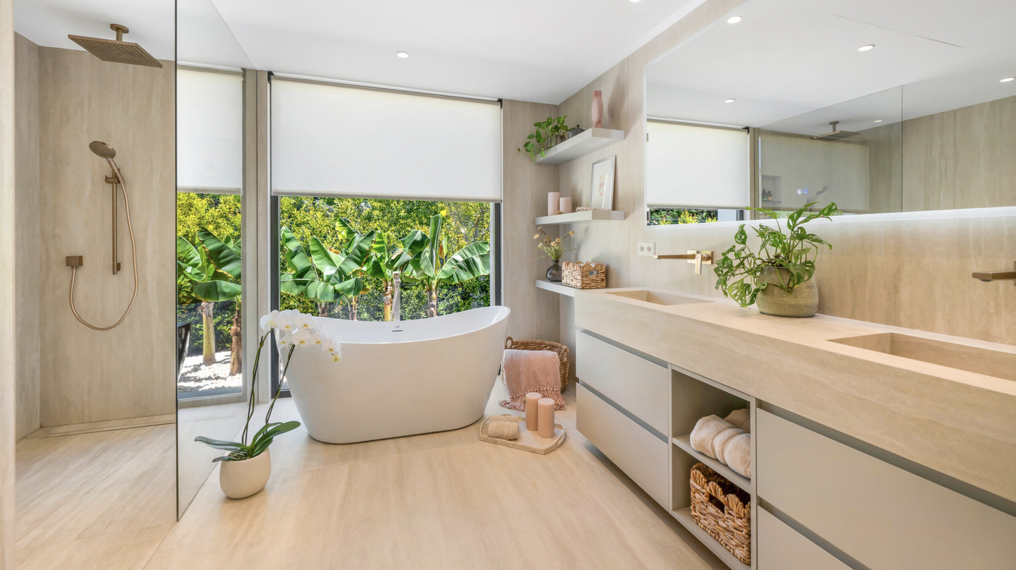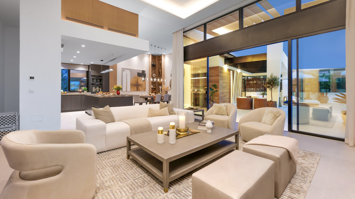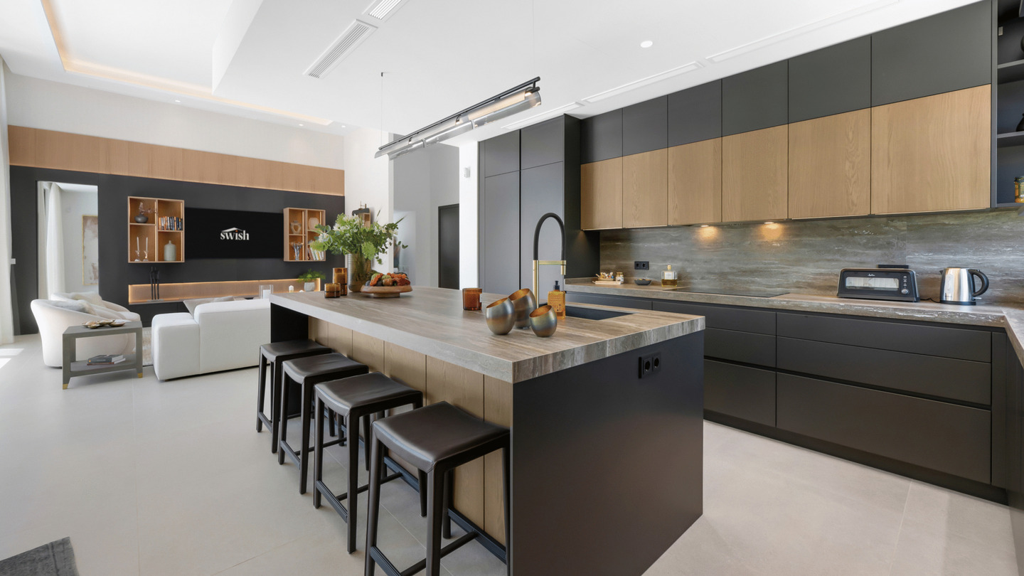 L'architecture impressionne par ses lignes épurées et ses intérieurs baignés de lumière. Le salon principal s'ouvre sur une cuisine design sur mesure avec des finitions minimalistes. Les grandes baies vitrées effacent la limite entre l'intérieur et l'extérieur, menant à de vastes terrasses idéales pour la détente.