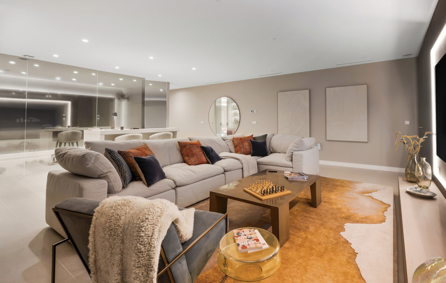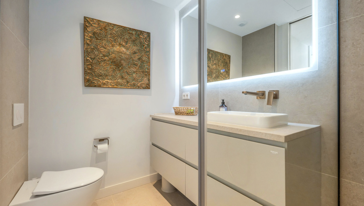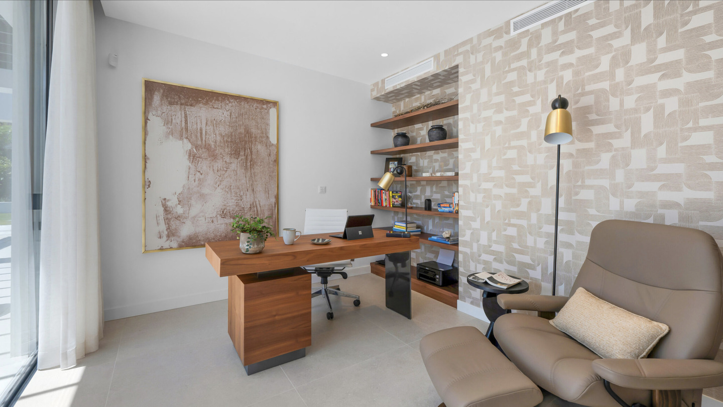 L'architecture impressionne par ses lignes épurées et ses intérieurs baignés de lumière. Le salon principal s'ouvre sur une cuisine design sur mesure avec des finitions minimalistes. Les grandes baies vitrées effacent la limite entre l'intérieur et l'extérieur, menant à de vastes terrasses idéales pour la détente.