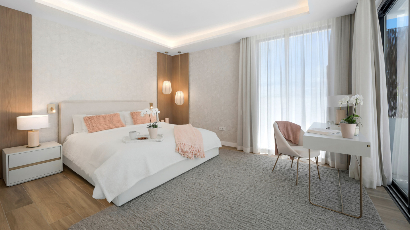 Répartie sur deux niveaux, la villa propose 5 chambres élégantes :