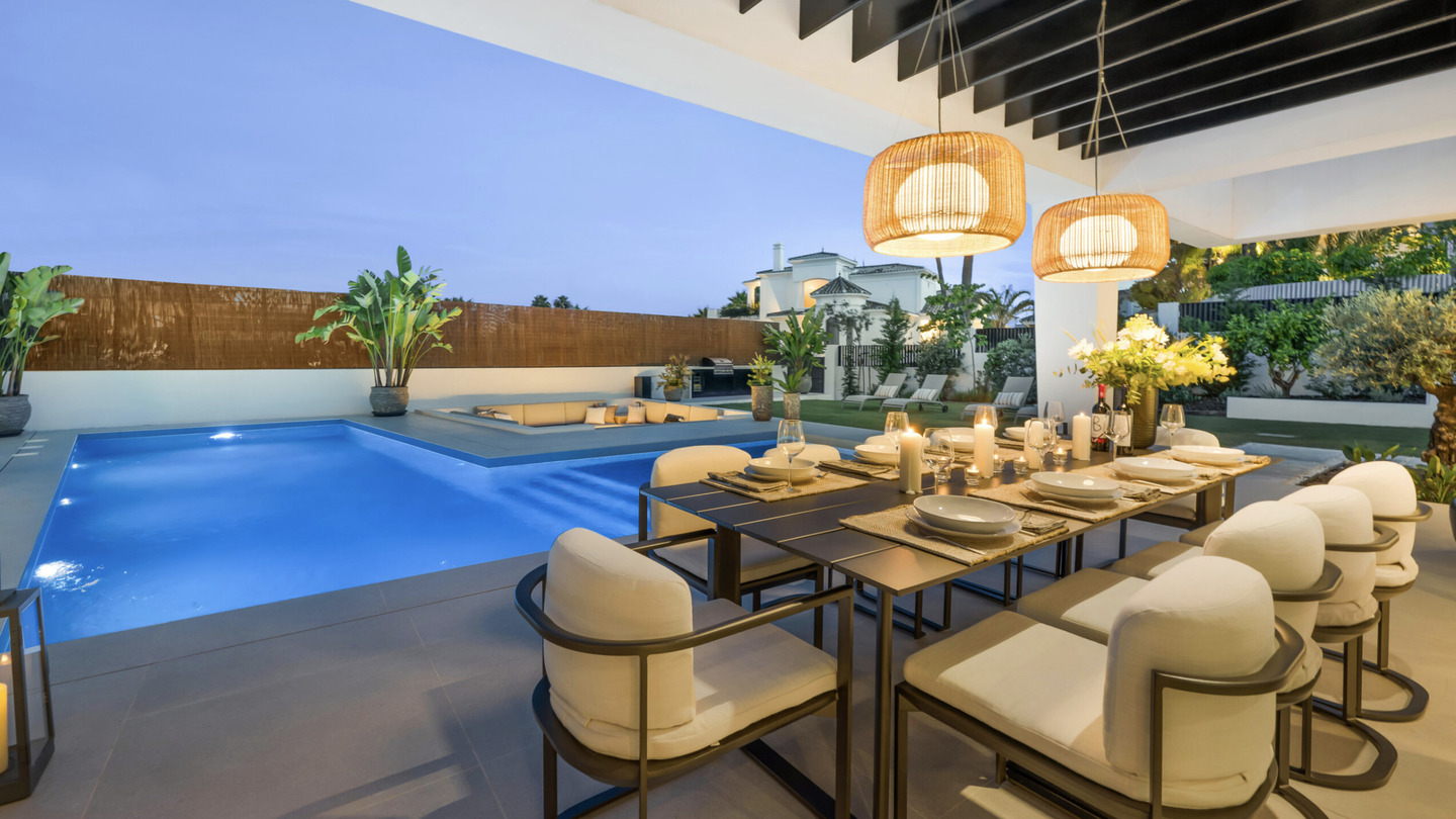 Située à Nueva Andalucía, cette villa contemporaine flambant neuve est conçue pour ceux qui recherchent un luxe raffiné. Idéalement placée à quelques minutes de l'effervescence de Puerto Banús et du Golden Mile, ce sanctuaire privé offre l'équilibre parfait entre sérénité et modernité.