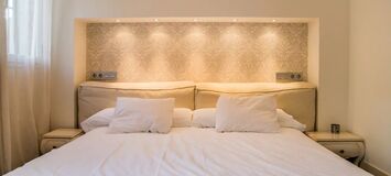 Au premier étage, les invités trouveront les 3 chambres. La chambre principale offre un lit queen-size, une salle de bains avec deux lavabos et douche à effet pluie et un dressing. La deuxième chambre dispose d'un grand lit double et partage une grande salle de bain (avec douche et baignoire) avec la troisième chambre qui offre 2 lits simples dans une chambre de style bohème.
