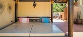 Le toit-terrasse est orienté à l’ouest, ce qui signifie que l’espace bénéficiera du soleil pendant la majeure partie de la journée. La terrasse offre beaucoup d'espace et de nombreux espaces pour s'asseoir. Pour ceux qui veulent échapper au soleil, vous disposez d'un lit couvert au toit de chaume, et pour ceux qui veulent se rafraîchir, il y a une douche sur le toit.