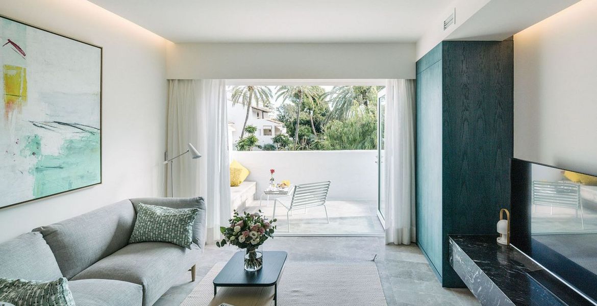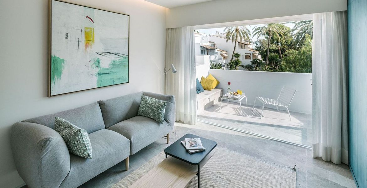 Cet élégant appartement d'une chambre, avec un lit gigogne supplémentaire, est niché dans le prestigieux complexe hôtelier 5 étoiles Puente Romano Beach & Spa Resort sur le Golden Mile de Marbella. Récemment rénové selon les normes les plus élevées, l'appartement dispose d'un salon lumineux avec un lit gigogne et des portes coulissantes en verre qui s'ouvrent sur une terrasse privée avec vue sur le jardin et la piscine.
