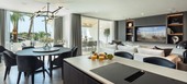 La cuisine design entièrement équipée, dotée d'appareils haut de gamme Gaggenau et Miele, est idéale pour préparer des collations légères ou profiter des services d'un chef privé. Les baies vitrées inondent l'espace de lumière naturelle, créant une ambiance intérieure-extérieure harmonieuse qui incarne parfaitement le style de vie de Marbella.