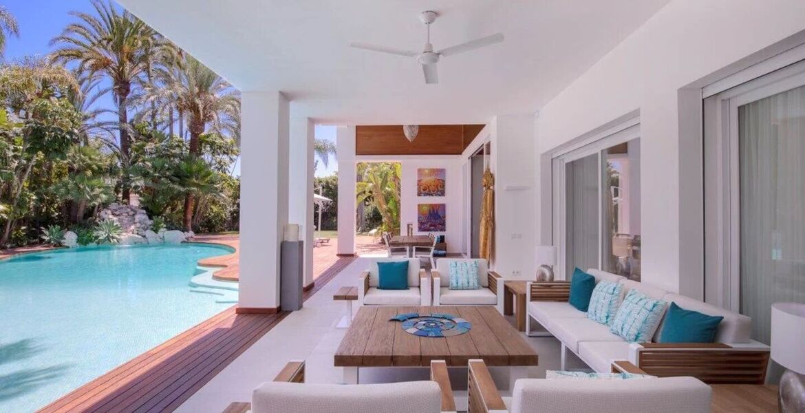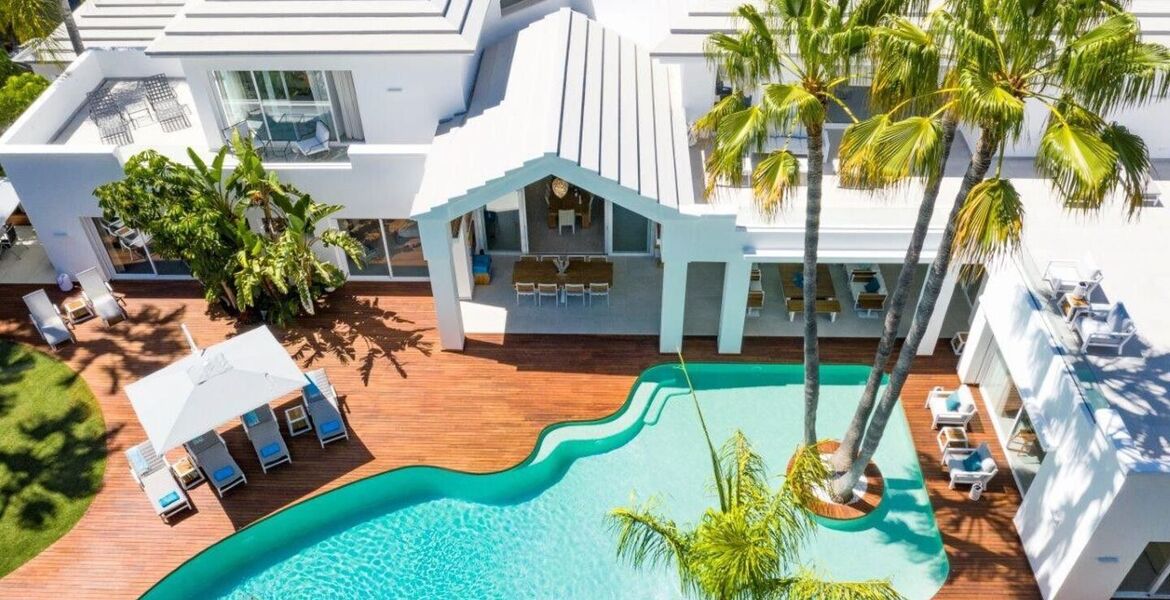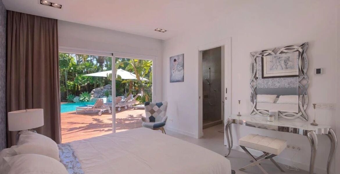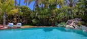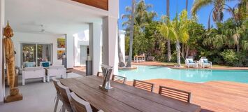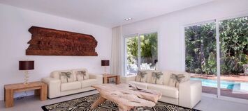 Spectaculaire villa en bord de mer récemment entièrement rénovée et située à Guadalmina Baja, un quartier résidentiel établi et recherché. Situé sur un terrain très privé orienté sud avec un portail d'entrée électrique qui s'ouvre sur une allée portugaise en pierre naturelle avec une végétation tropicale. Un beau pont en bois avec un plafond voûté à double hauteur et une pièce d'eau mène à l'entrée principale de la propriété. Le hall d'entrée est ouvert avec un plafond de 7 mètres de hauteur avec une galerie au niveau supérieur le surplombant et menant au salon et à la salle à manger. Belle cuisine moderne ouverte sur l'espace familial et buanderie et garage double. Il y a 3 chambres avec salle de bains au rez-de-chaussée, toutes avec accès au magnifique jardin. La chambre principale avec salle de bains privative se trouve au niveau supérieur et dispose d'une immense terrasse privée donnant sur le jardin, d'une incroyable salle de bains avec douches doubles à l'italienne Onyx pour elle et lui et de dressings. Il y a deux chambres supplémentaires avec salle de bains privative à ce niveau ainsi qu'un bureau. La propriété dispose d'un incroyable jardin tropical avec une piscine en forme de lagon et une plus petite piscine chauffée avec jacuzzi. Une maison familiale unique magnifiquement finie alliant le meilleur du design moderne et l'utilisation de matériaux naturels.