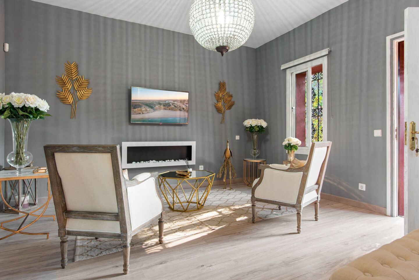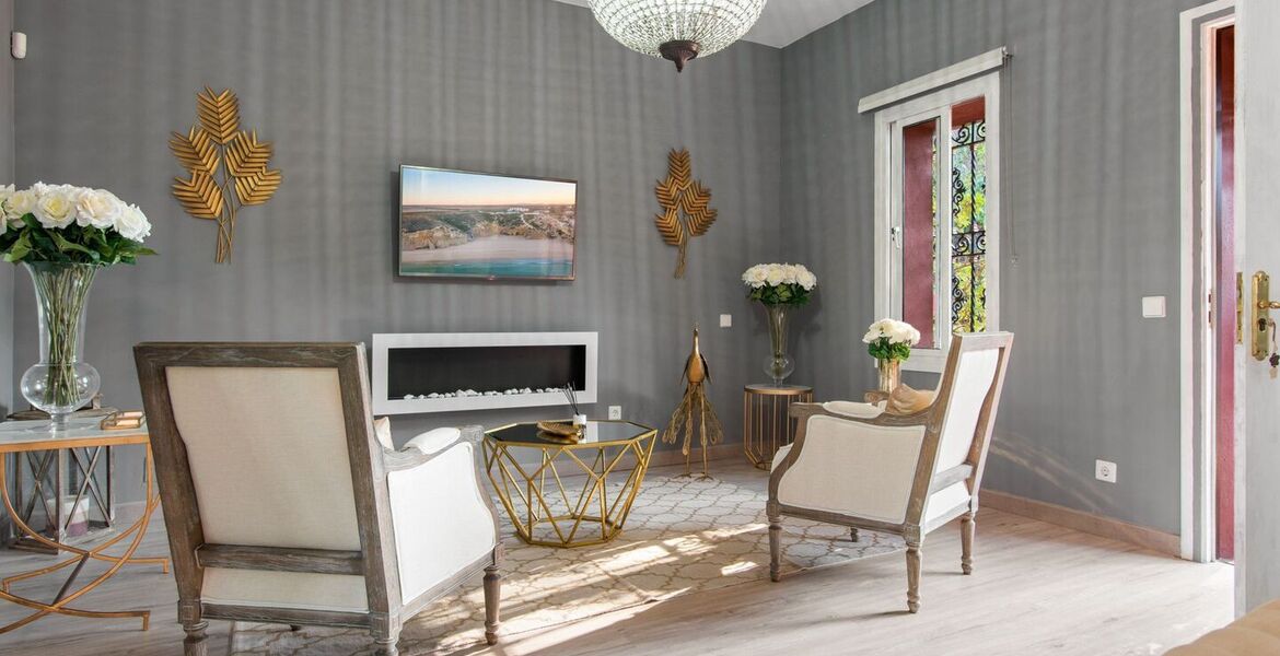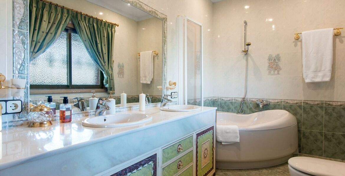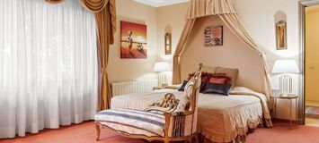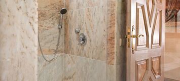Elle dispose de jardin, salon de jardin, terrain clôturé, 50 m² de terrasse, lave-linge, sèche-linge, barbecue, fer à repasser, accès internet (wifi), sèche-linge, balcon, piste de tennis, salle de sport, alarme, sauna, jacuzzi, spa, chauffage radiateurs électriques. , climatisation, piscine privée, garage et parking dans le même bâtiment, 5 téléviseurs.