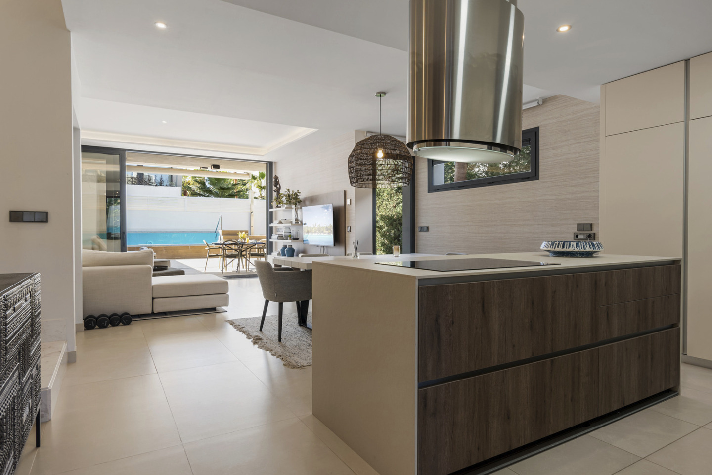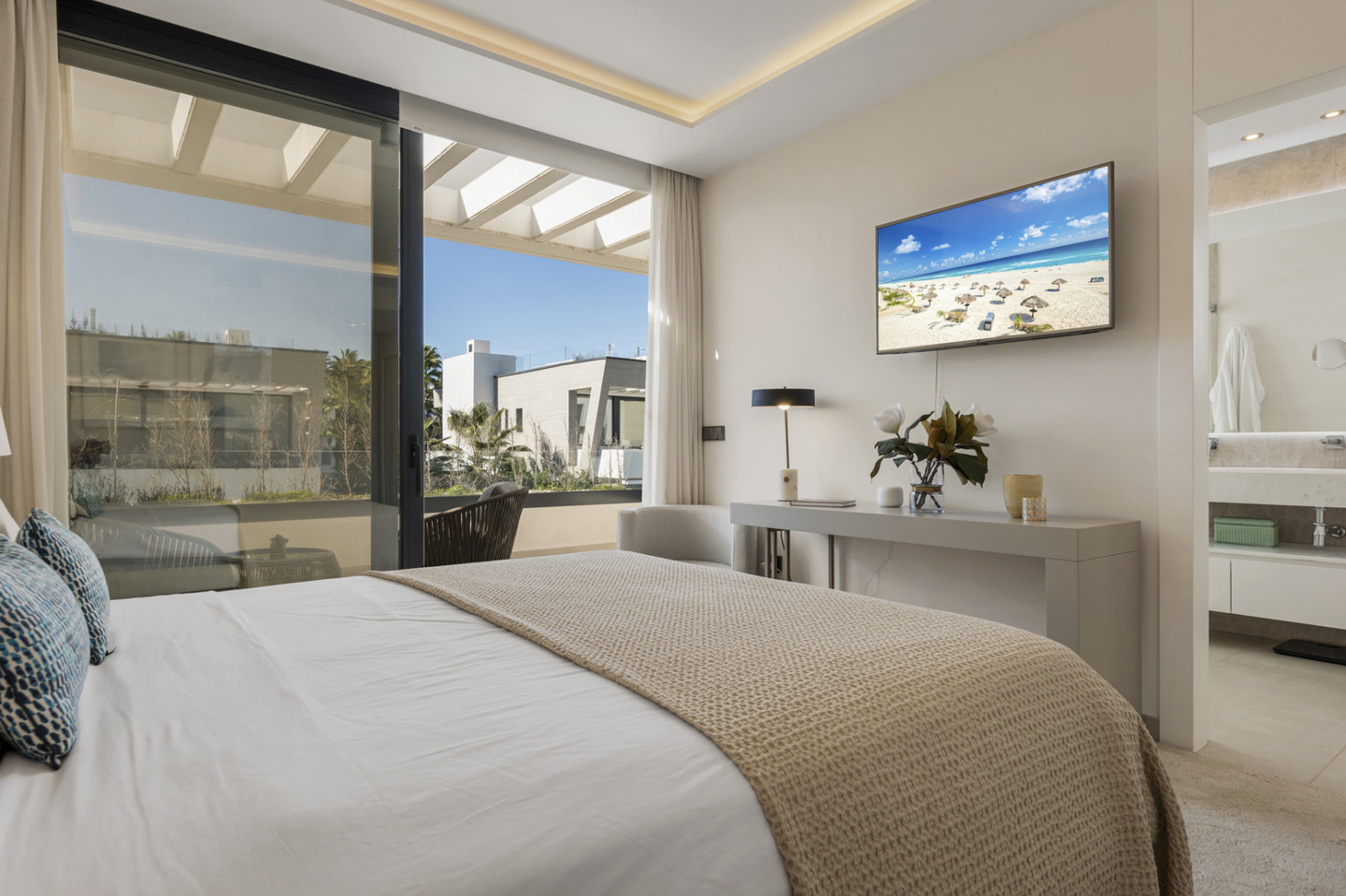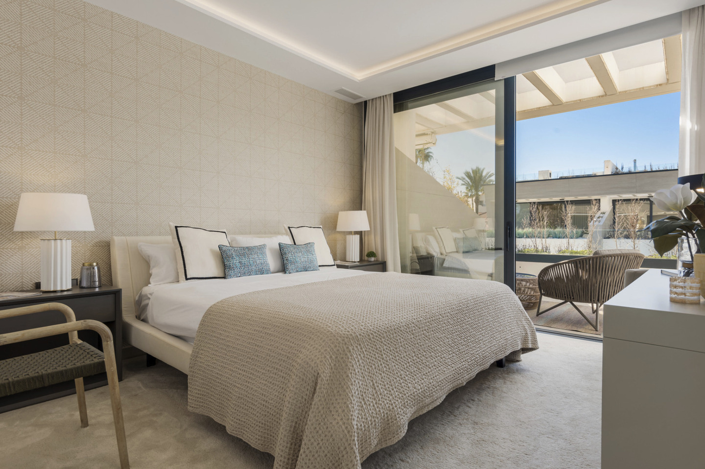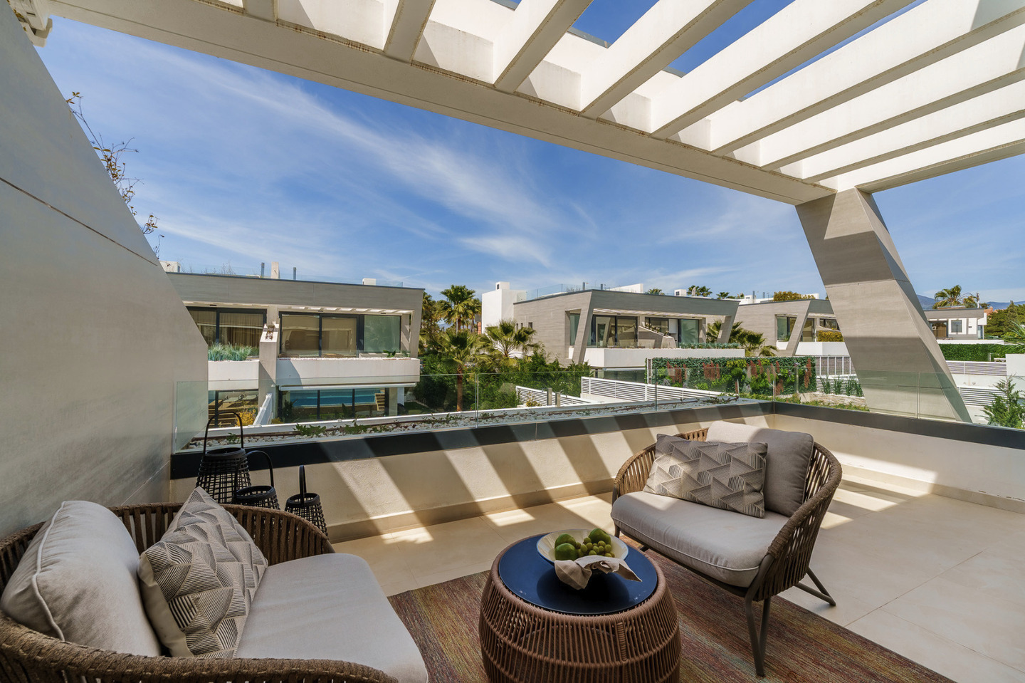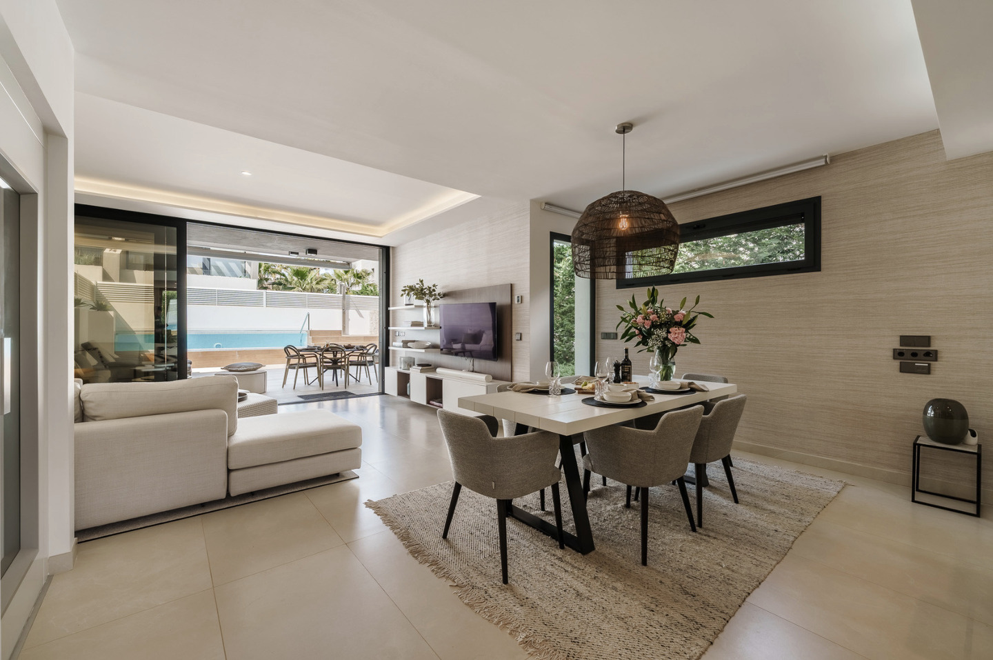 Этот уютный таунхаус в элитной урбанизации Banus Bay станет идеальной базой для вашего следующего отпуска. Расположенный всего в нескольких минутах ходьбы от оживлённой марины Пуэрто-Бануса, объект идеально подходит для семей или групп друзей, желающих насладиться лучшими сторонами образа жизни Марбельи. С пятью комфортабельными спальнями здесь достаточно места для всех. Главная спальня с кроватью размера «king-size» и собственной ванной комнатой станет тихим убежищем после дня исследований. Две дополнительные спальни также оснащены кроватями «king-size» для максимального комфорта, а в двух оставшихся комнатах стоят две односпальные кровати в каждой, что идеально для детей или дополнительных гостей. Каждая комната светлая, просторная и продумана для вашего удобства.