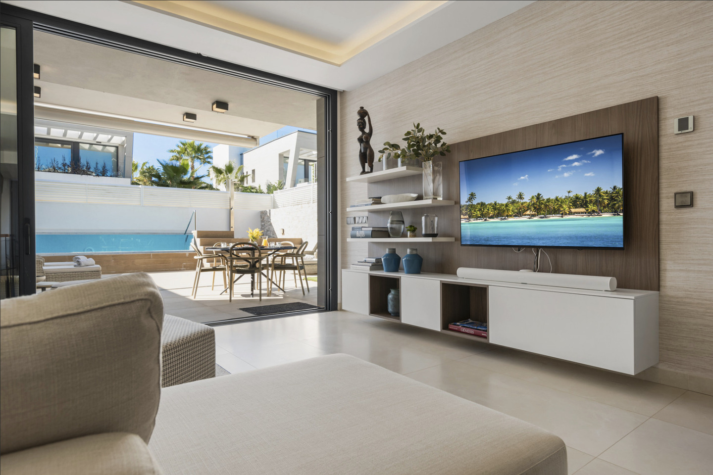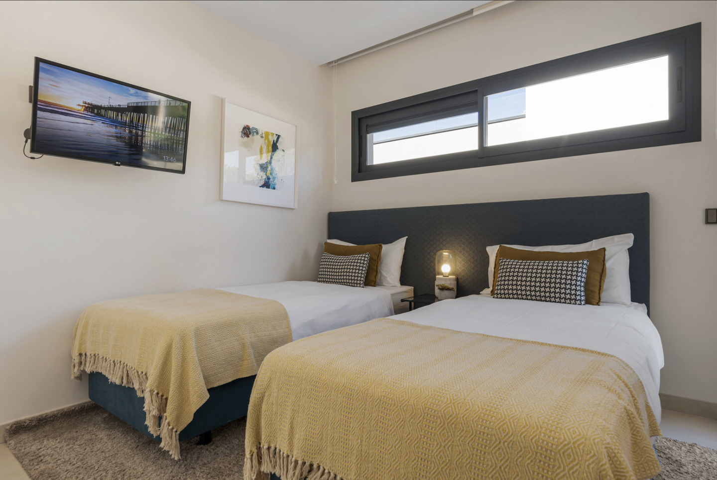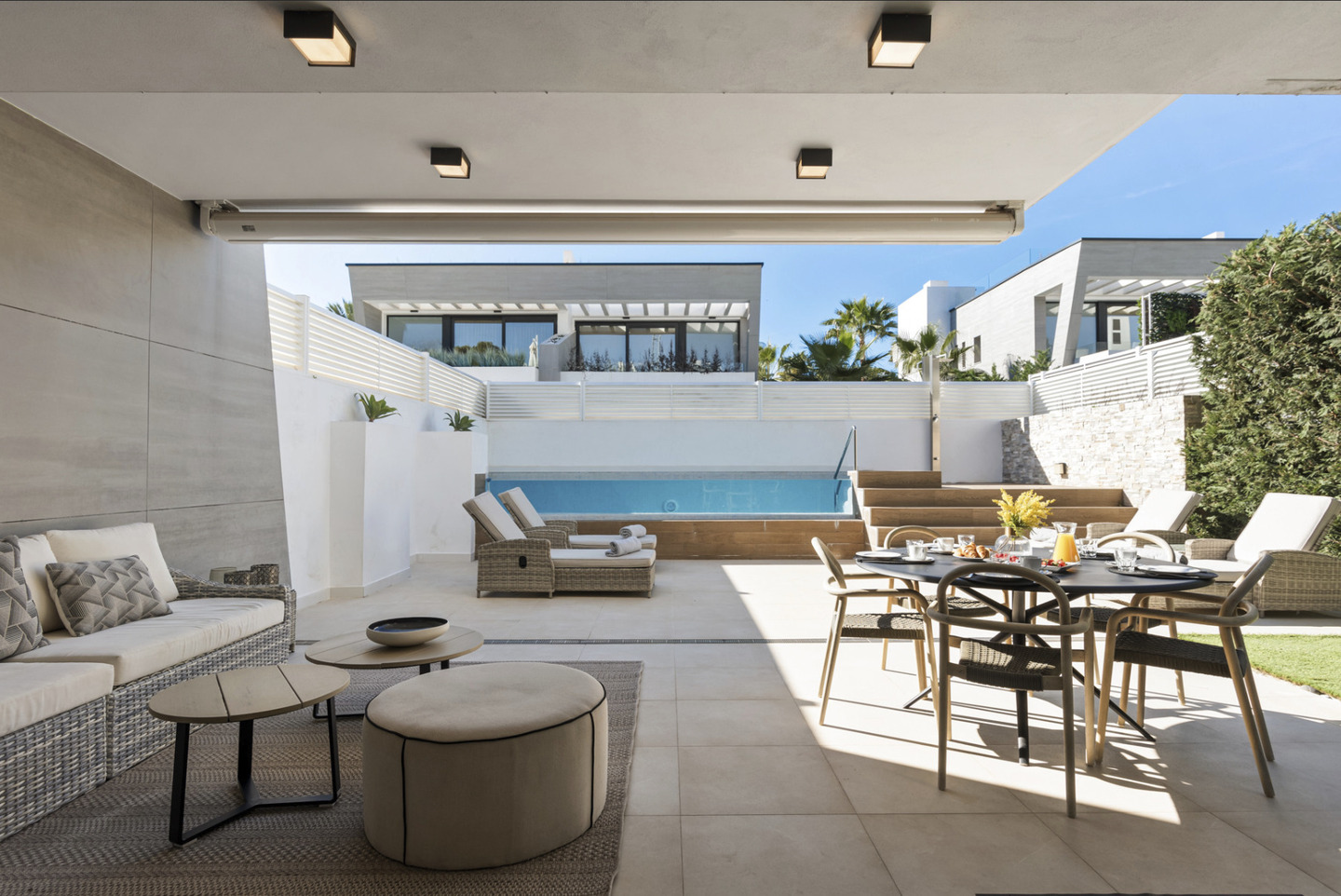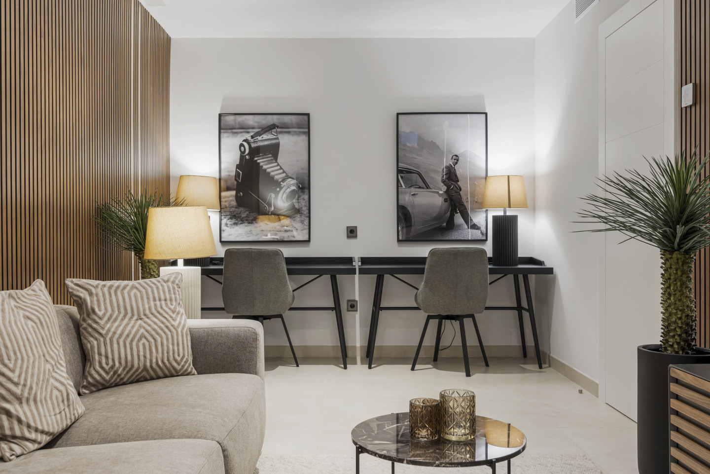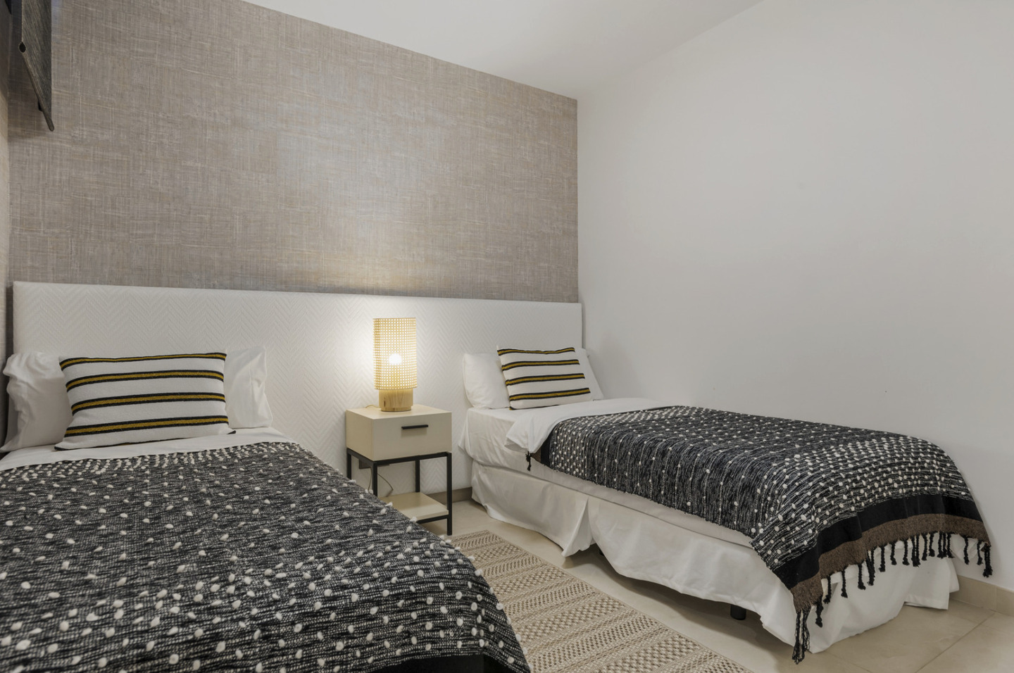 Этот уютный таунхаус в элитной урбанизации Banus Bay станет идеальной базой для вашего следующего отпуска. Расположенный всего в нескольких минутах ходьбы от оживлённой марины Пуэрто-Бануса, объект идеально подходит для семей или групп друзей, желающих насладиться лучшими сторонами образа жизни Марбельи. С пятью комфортабельными спальнями здесь достаточно места для всех. Главная спальня с кроватью размера «king-size» и собственной ванной комнатой станет тихим убежищем после дня исследований. Две дополнительные спальни также оснащены кроватями «king-size» для максимального комфорта, а в двух оставшихся комнатах стоят две односпальные кровати в каждой, что идеально для детей или дополнительных гостей. Каждая комната светлая, просторная и продумана для вашего удобства.