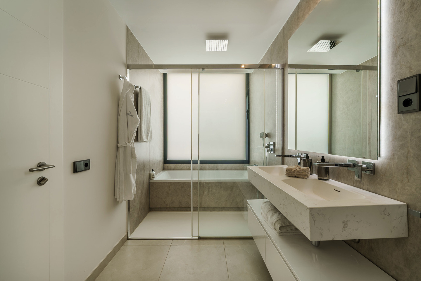 Выйдите на улицу, чтобы насладиться солнечной погодой на частной террасе с уличными сиденьями и обеденной зоной. Терраса ведёт к вашему собственному бассейну, где можно освежиться или расслабиться на шезлонгах. Дом ориентирован на запад, так что солнце будет радовать вас во второй половине дня и вечером — идеально для принятия солнечных ванн или ужина на закате. Есть также терраса на крыше с потрясающим видом на окружающую зелень и горы, оснащённая роскошным джакузи — лучшее место для утреннего кофе, вечерних напитков или отдыха под звёздами.