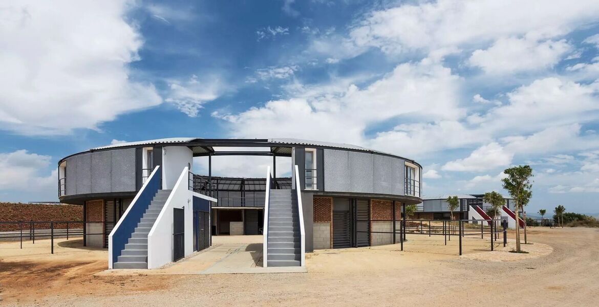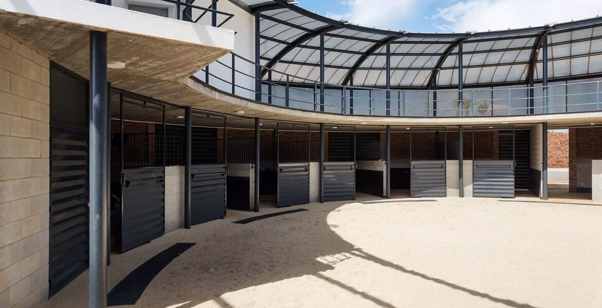 Он состоит из конноспортивной зоны, состоящей из крытого и открытого манежа, а также двух конюшен на 24 лошади в обстановке исключительной красоты и комфорта.