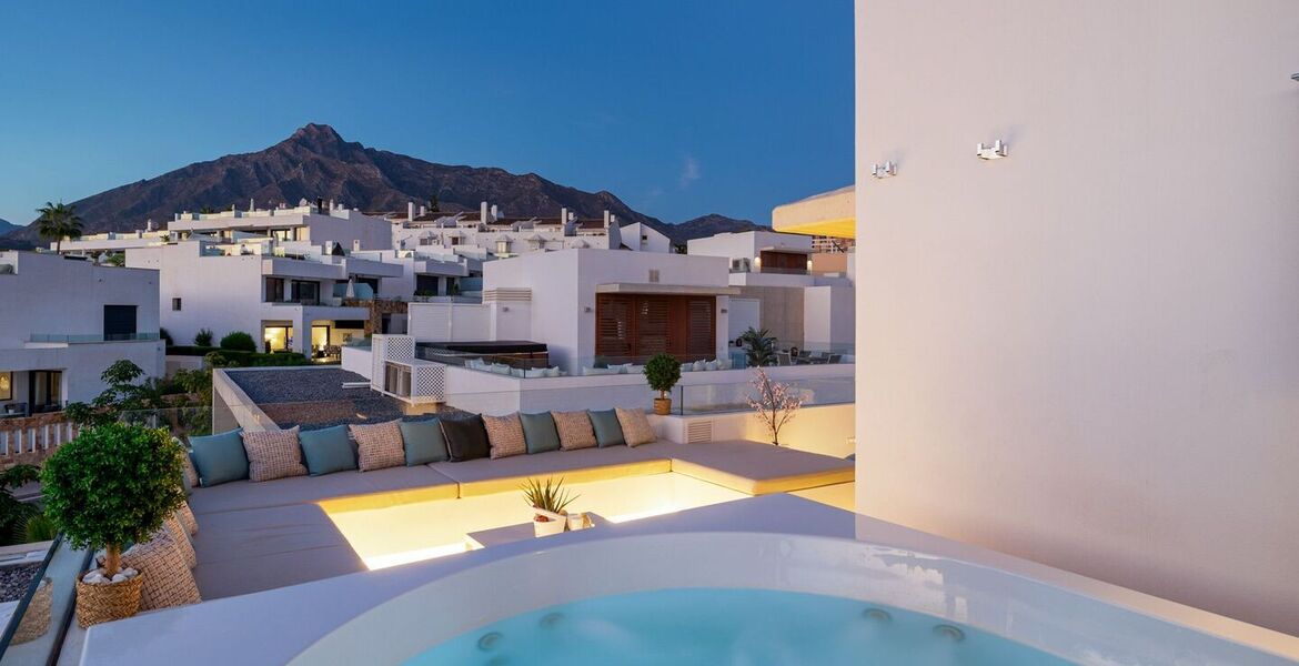 Situated just 800 metres from the beaches of the Golden Mile and just 400 metres away from the iconic Puente Romano Beach Resort & Spa, The Collection is a small, exclusive, gated community of only 26 semi-detached Townhouses. The urbanisation enjoys a gorgeous communal pool deck with salt water communal swimming pool area with beautiful greenery accompanied by mountain and sea views. Additionally, guests will have access to the Spa with Sauna, Jacuzzi, and gym.