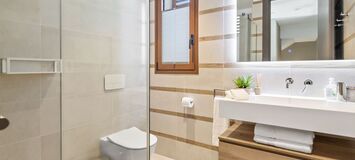 Upstairs, is the impressive ensuite Master Suite with walk-in dressing room, spacious bedroom and bathroom with double rain shower. There is a private terrace with a double-sunbed.