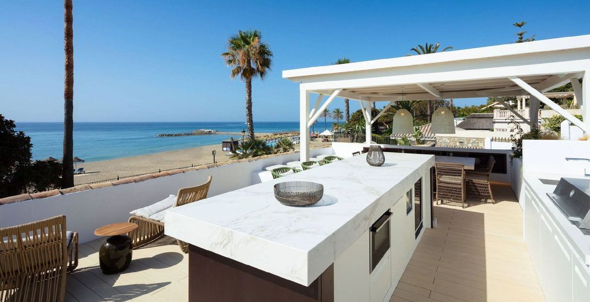 Experience the ultimate in beachfront luxury at this stunning, fully renovated villa in the heart of Marbella's prestigious Golden Mile. Enjoy direct beach access and proximity to the renowned Puente Romano Resort, with its world-class amenities.