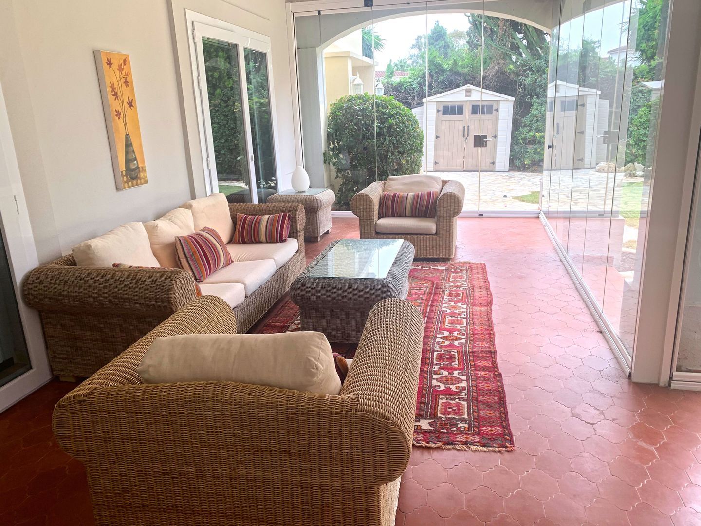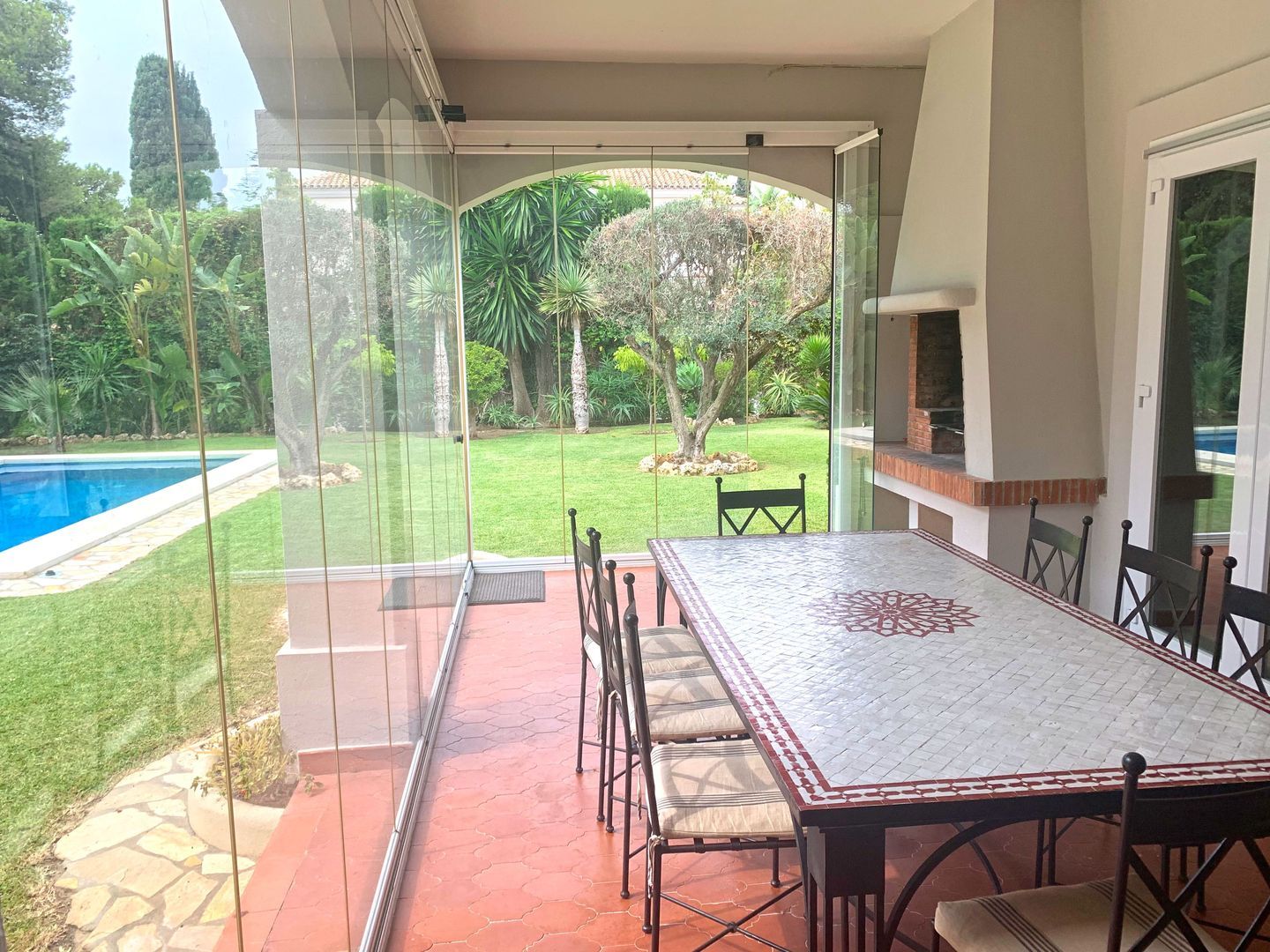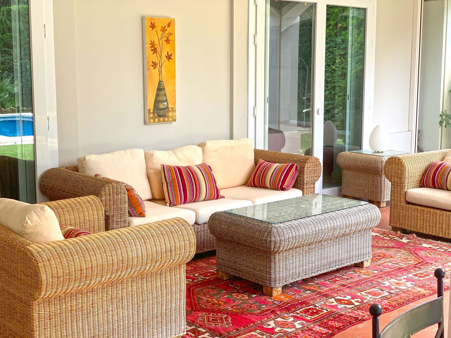 Villa 4-bedroom/4 bathroom private villa in Cancelada Marbella with pool accommodates up to 8 guests. The private garden offers a pool. The shaded terrace with lounge set is ideal for relaxing and there are lounge beds for sunbathing. There is an outside kitchen/bar with BBQ and roof terrace.