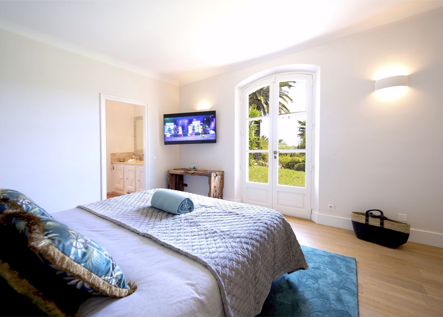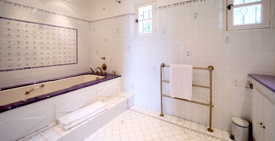 For this reason we suggest to our Guests to spend the day at the beach from 11.00 a.m. to 6.00 p.m. Provençal hamlet composed of a main villa (4 bedrooms), a guest house (1 independent bedroom) and a caretaker's house (2 sleeping places). The whole on 320 m2 of living space (280 m2 reserved for VIPs) + 200 m2 of outdoor living space (covered terraces, pergola, ramade and balconies) on 4,800 m2 of land planted with trees and landscaped with Mediterranean species, overlooking the vineyards of the Belle Isnarde hill (dominant view of the Baie des Canoubiers and the Château Borelli)