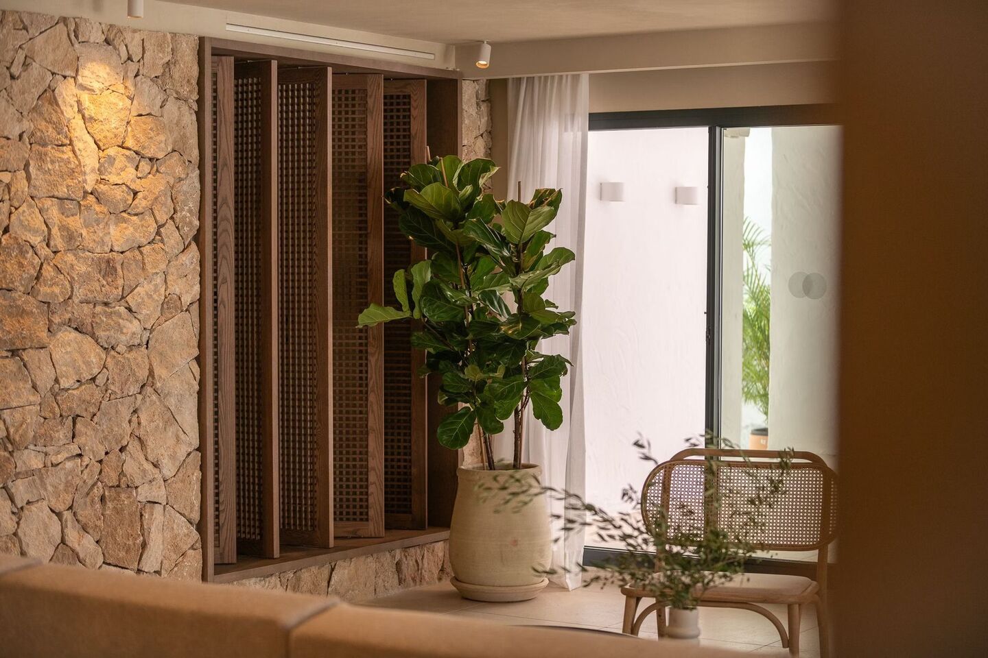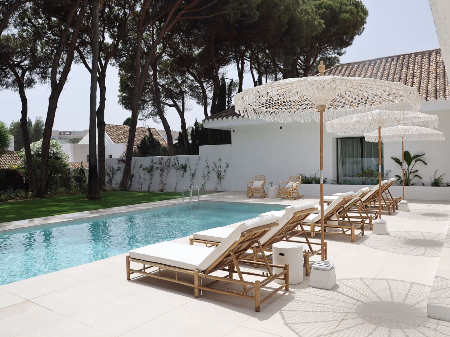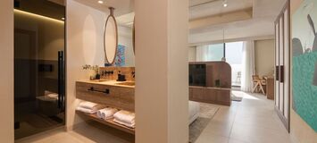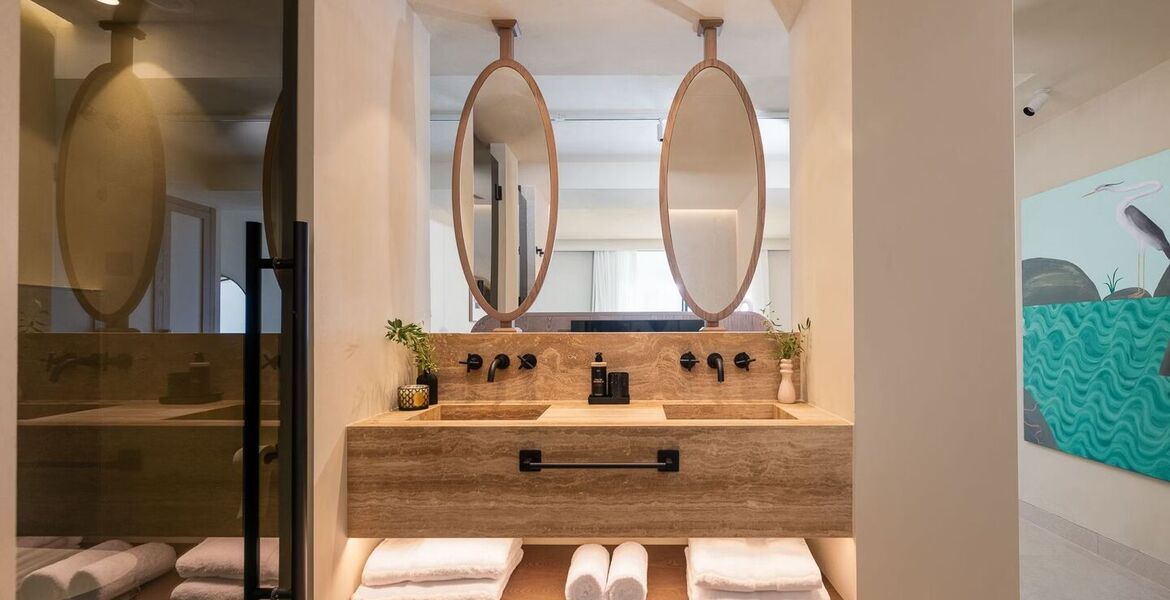 Five Bedroom Villa with private pool and garden. This villa consists of two floors. Boasting a private entrance, this air-conditioned villa includes 1 living room, 5 separate suites with private bathroom with bath and shower and each of the suites with their own garden or terrace to sunbed in privacy. The villa also has an extra toilet in the ground floor. Guests will find a stovetop, a refrigerator, a wine cellar, a dishwasher and kitchenware in the fully equipped kitchen. The villa also features a barbecue and fireplace. The spacious villa offers soundproof walls, a coffee maker as well as a terrace with garden views. All our walls are covered of art that you could admire and even buy.