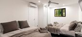 The master bedroom is spacious with a great en suite bathroom and walk-in closet with views of the pool area. In total, there are 5 bedrooms. Another bedroom with en suite bathroom is located in the basement area with direct access to the pool area.