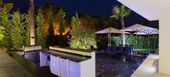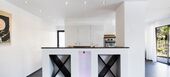 From the kitchen area, there is direct access to the outdoor terrace and pool area.