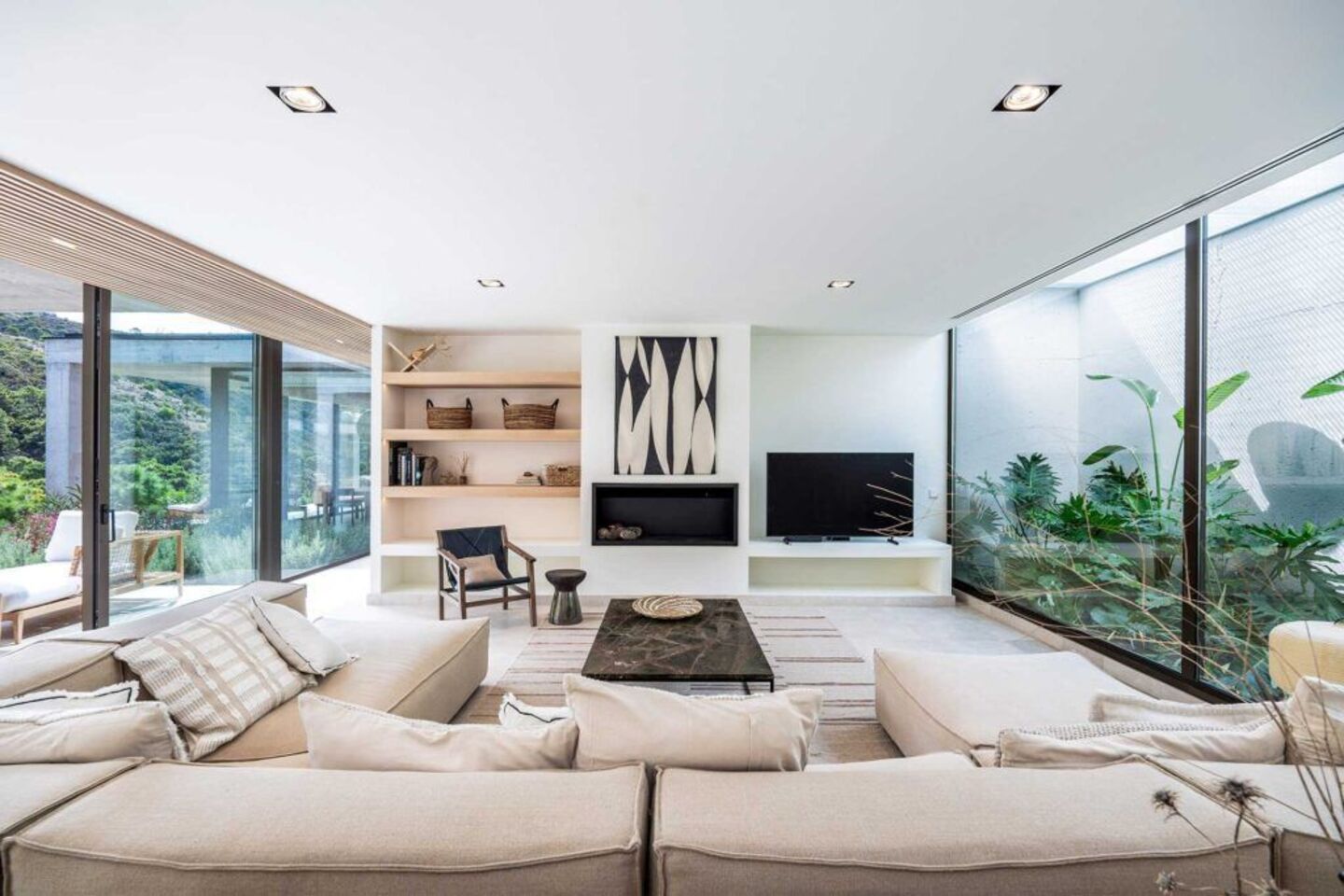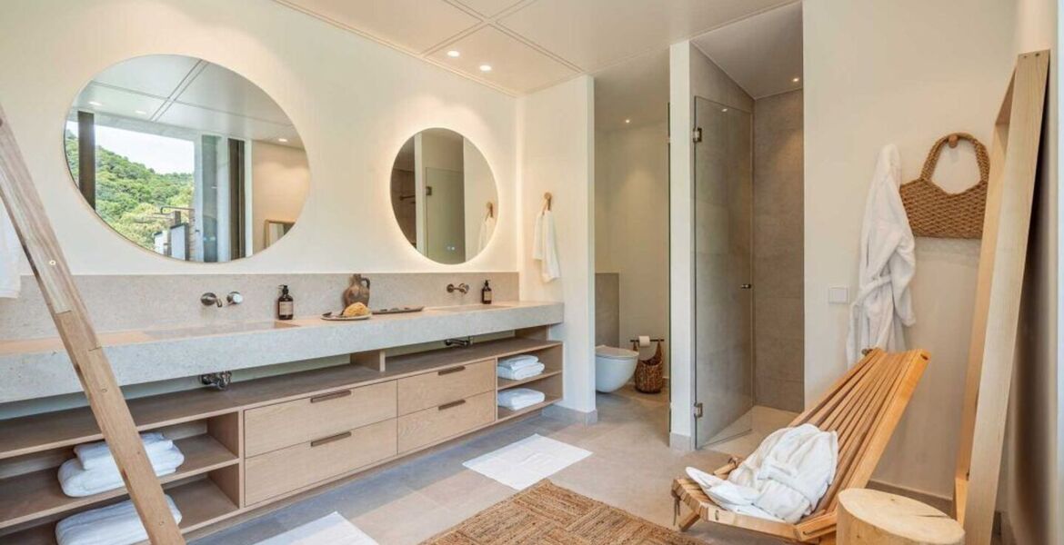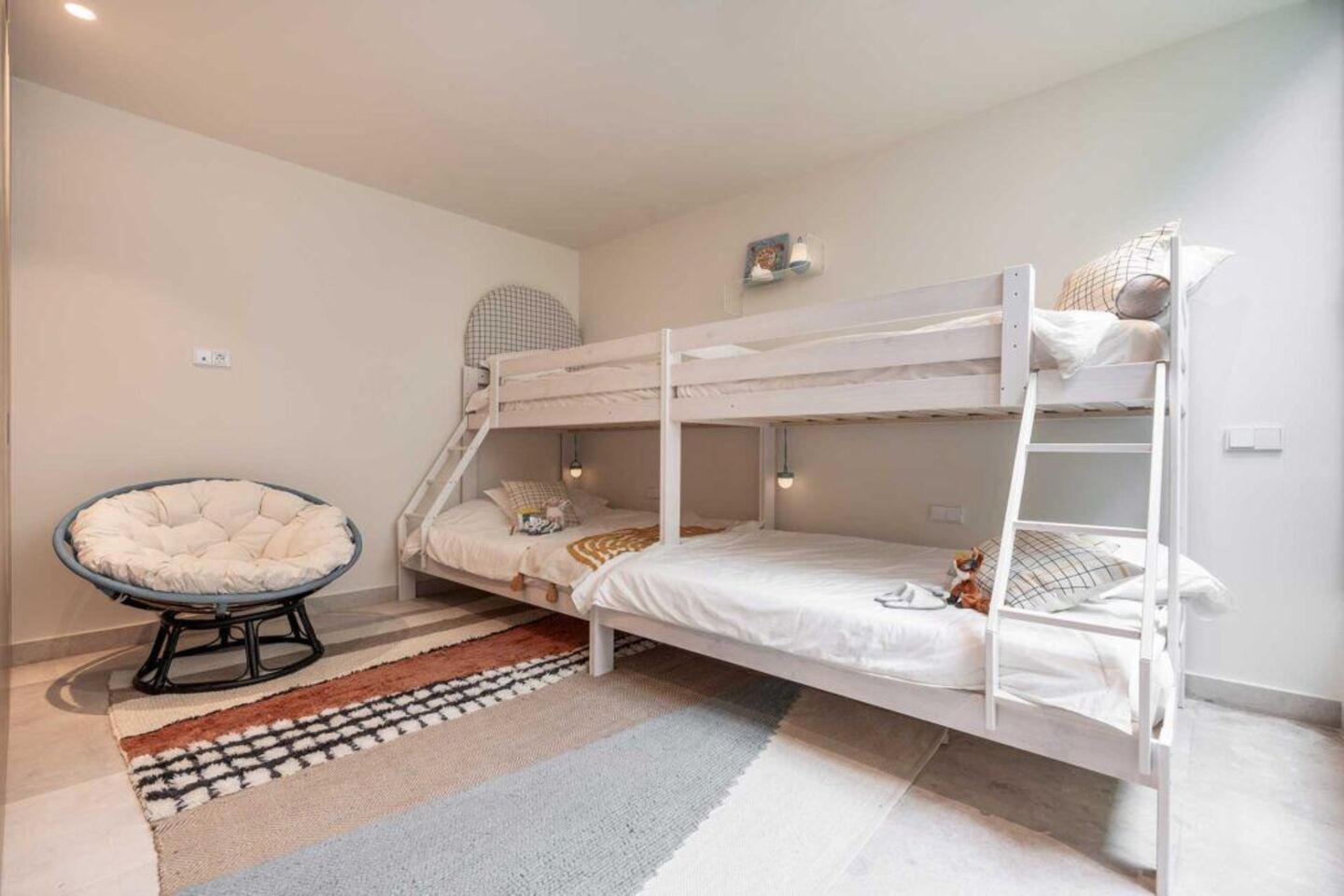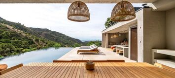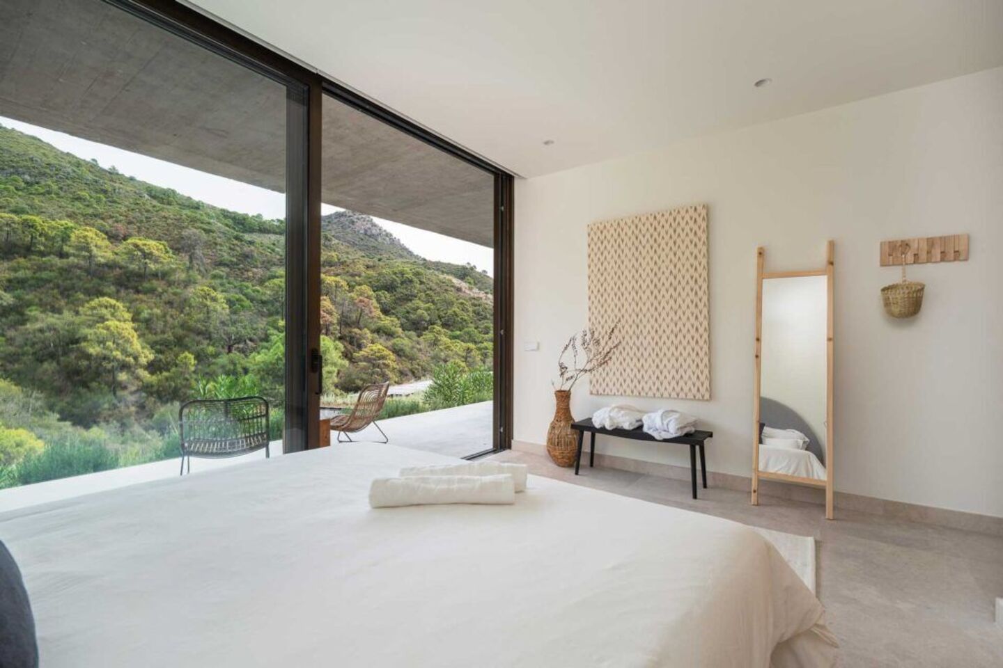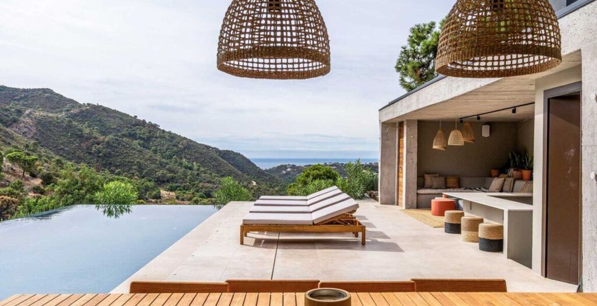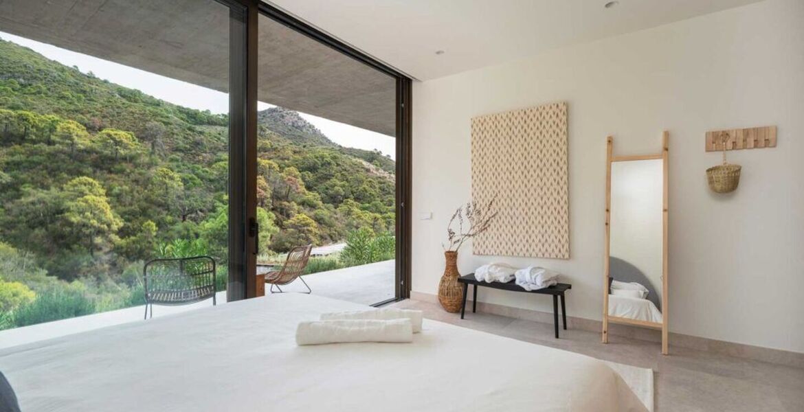 This 5-bedroom, 5-bathroom property is a harmonious blend of luxury and nature with clever and non-fussy design. This haven near Marbella has a twist of the Scandinavian aesthetic to add that reassuringly functional yet stylish feel. The property is set over three levels. Park on the top level, and then walk down to the main floor, which encompasses the lounge, terrace, pool, and the master suite. The lower level is where you’ll find the remaining bedrooms, which include three more en-suites and a child’s room with two bunk beds.