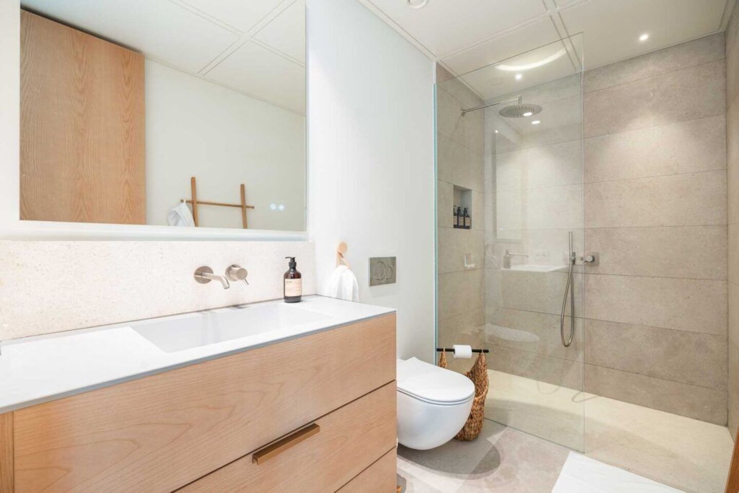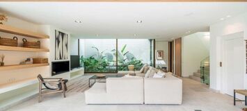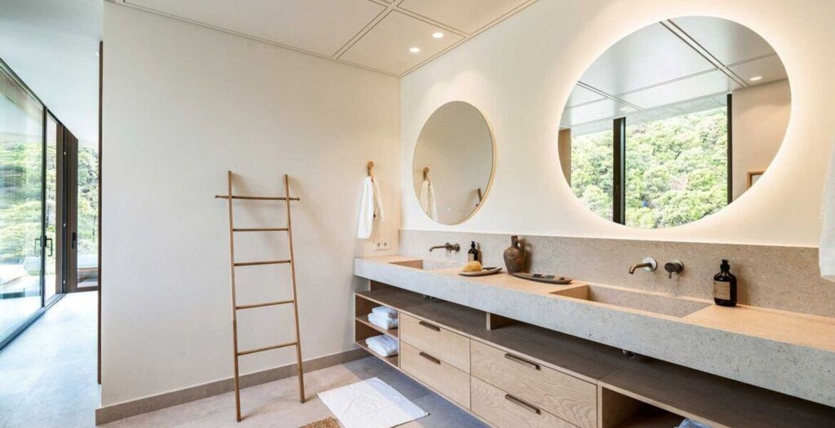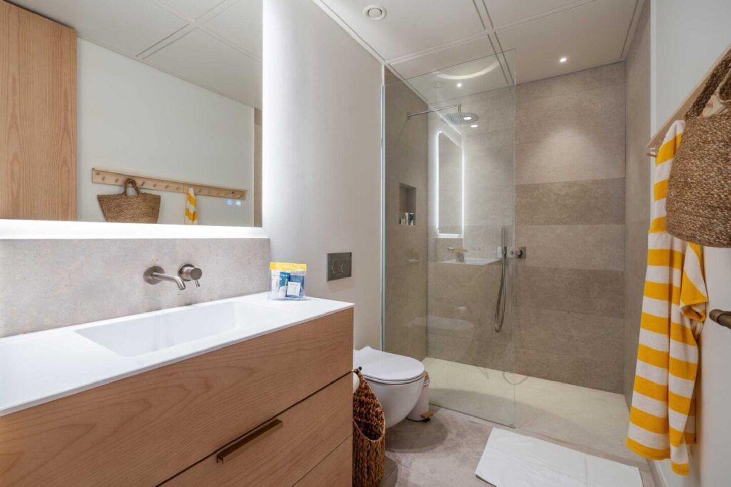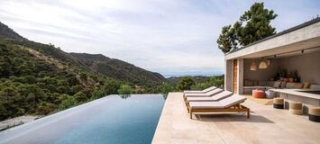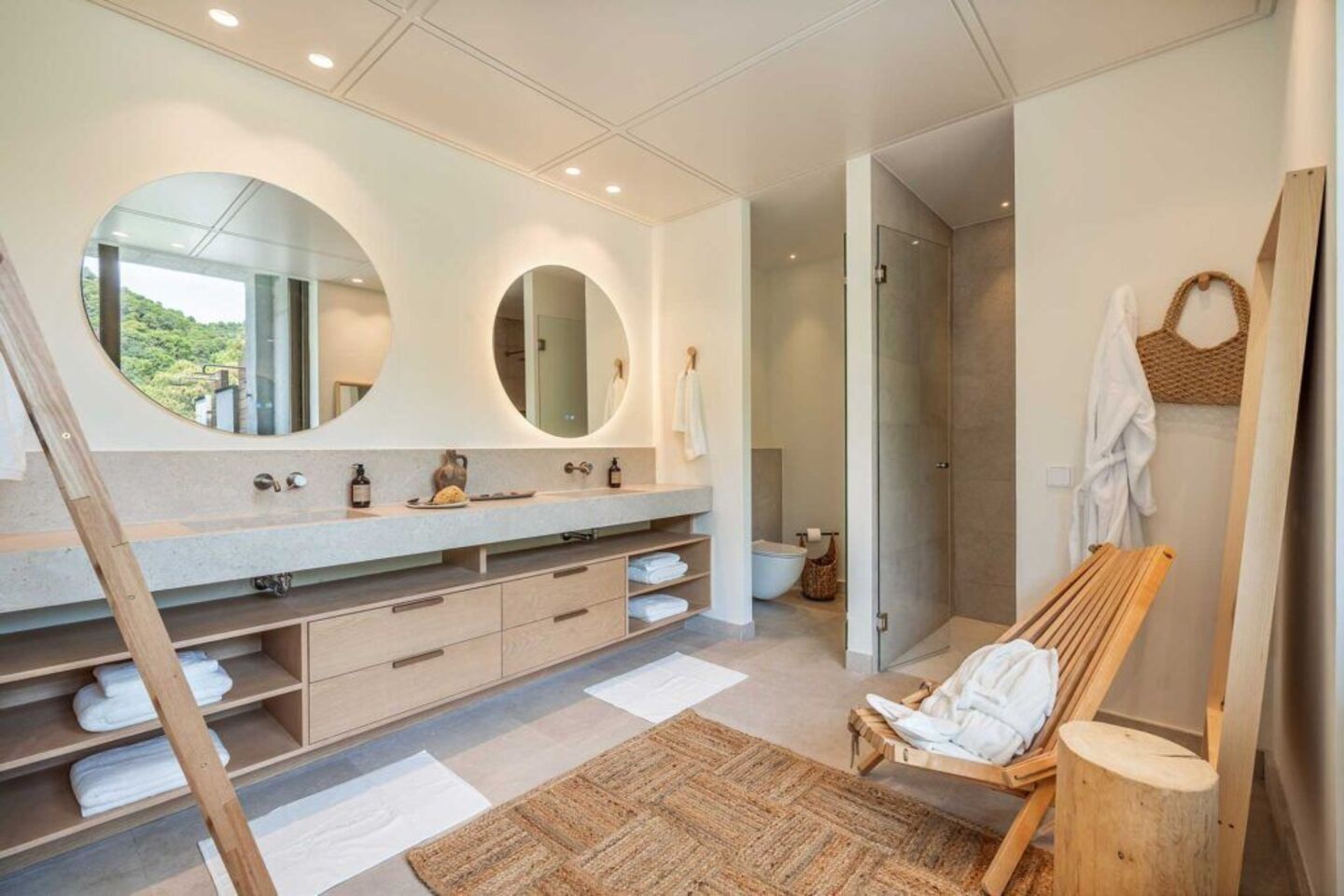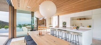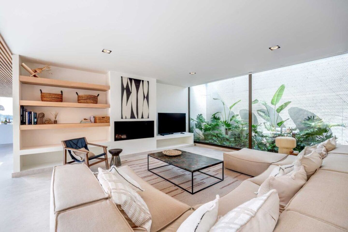 This 5-bedroom, 5-bathroom property is a harmonious blend of luxury and nature with clever and non-fussy design. This haven near Marbella has a twist of the Scandinavian aesthetic to add that reassuringly functional yet stylish feel. The property is set over three levels. Park on the top level, and then walk down to the main floor, which encompasses the lounge, terrace, pool, and the master suite. The lower level is where you’ll find the remaining bedrooms, which include three more en-suites and a child’s room with two bunk beds.