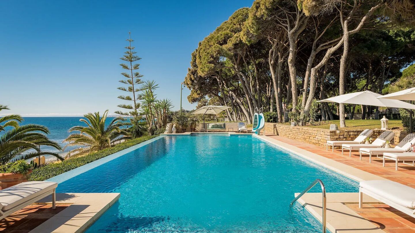 Experience the ultimate luxury retreat in this magnificent beachfront villa, located on Marbella's prestigious Golden Mile, offering unparalleled comfort, exquisite design, and breathtaking sea views.