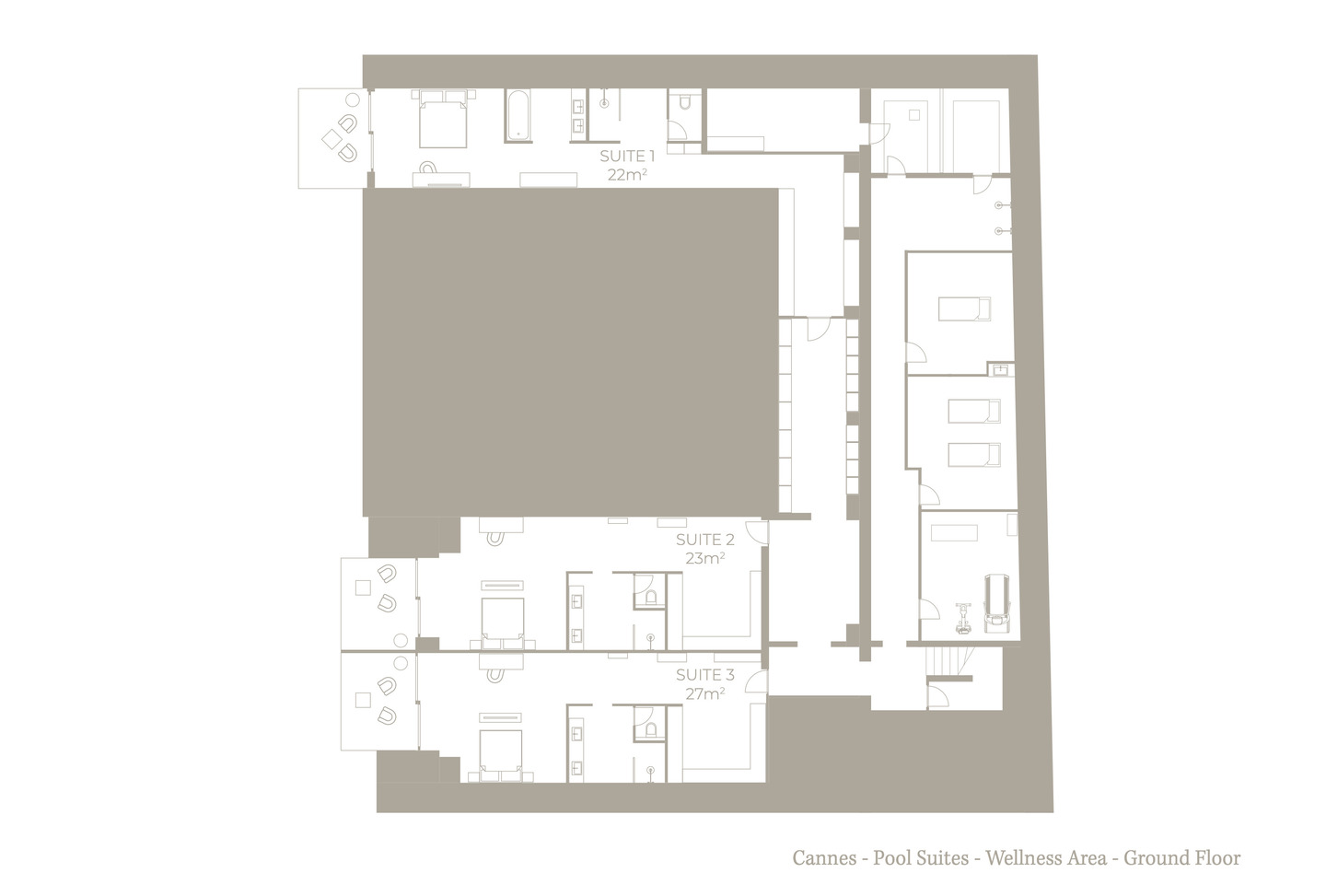 • Wellness Area: Three suites (VIII, IX, X), with direct access to the spa.